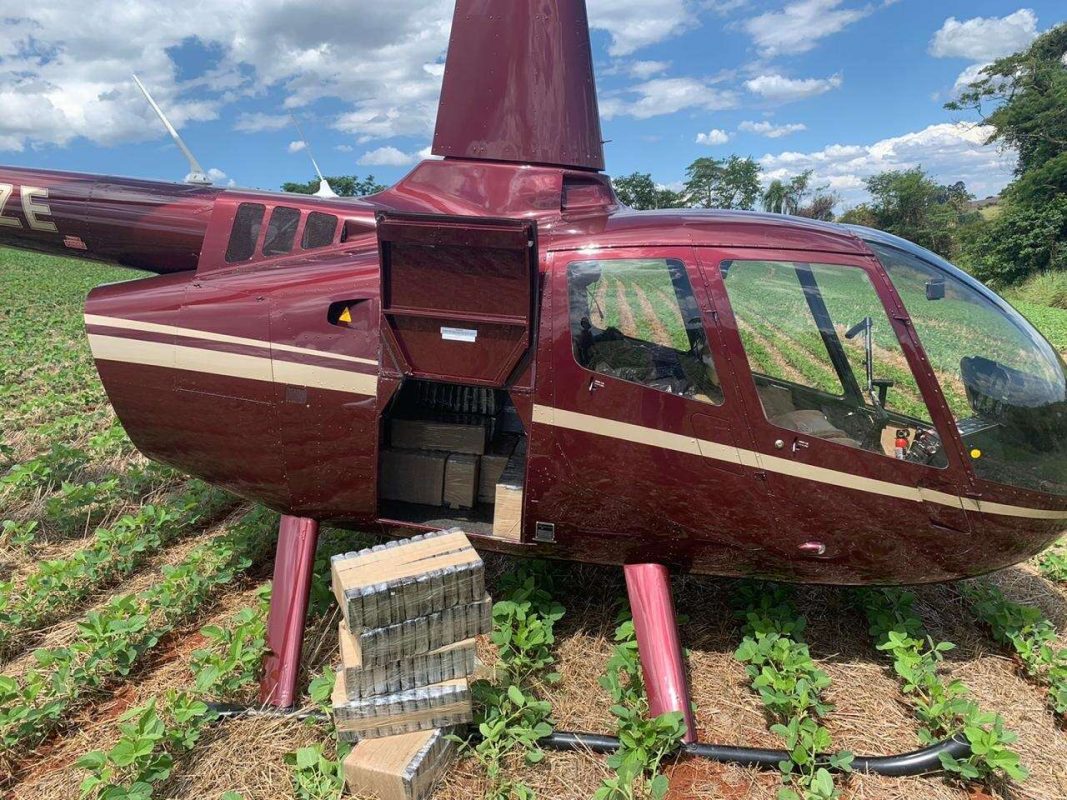 Uma ação conjunta da Polícia Civil de Campo Mourão (a 90 quilômetros de Maringá), sob o comando do delegado Nilson Rodrigues e agentes da Polícia Federal nesta sexta-feira, (20), resultou na apreensão de um helicóptero carregado de cocaína, além 54 mil reais em espécie, e duas pessoas foram presas. A primeira prisão aconteceu em um Hotel de Campo Mourão. No local os investigadores flagraram um homem que estava de posse de uma picape VW Saveiro, sendo que na caçamba da mesma havia uma grande quantidade de combustível usado em aeronaves.