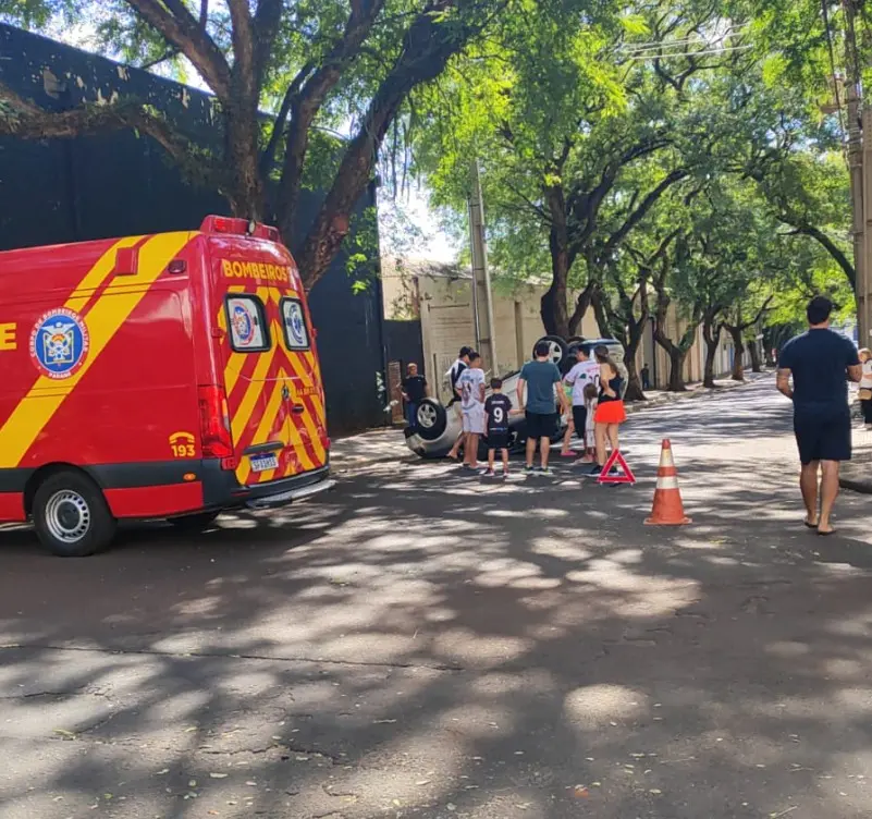 Um acidente envolvendo dois veículos foi registrado no início da tarde deste domingo, 18, no cruzamento das ruas Nassau e Rui Barbosa, na Zona 7, em Maringá. Um dos carros chegou a capotar após a colisão, mas, apesar da gravidade da cena, os quatro ocupantes do veículo, uma família com duas crianças pequenas, não sofreram ferimentos graves.