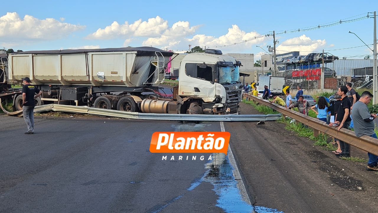 Um grave acidente envolvendo duas carretas foi registrado na tarde desta quinta-feira (04) no Contorno Norte, bairro Bom Jardim, em Maringá. A colisão aconteceu no trecho sentido Sarandi, e deixou o trânsito completamente interditado nos dois sentidos.