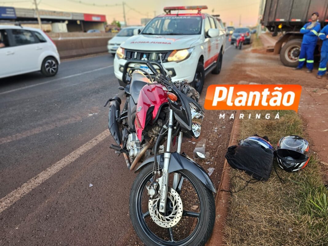 Um acidente grave entre uma motocicleta e um caminhão foi registrado na noite desta terça-feira, 9, na Avenida Colombo, próximo ao Trevo do Catuaí, em Maringá.