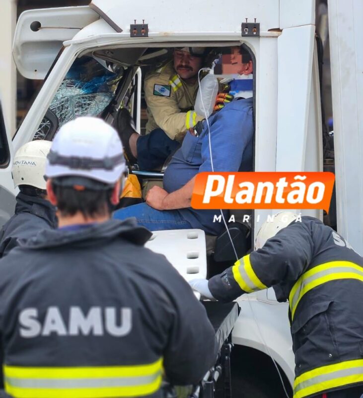 O caminhoneiro sofreu ferimentos moderados nas pernas, sem risco de morte, e foi encaminhado para um hospital de Maringá.