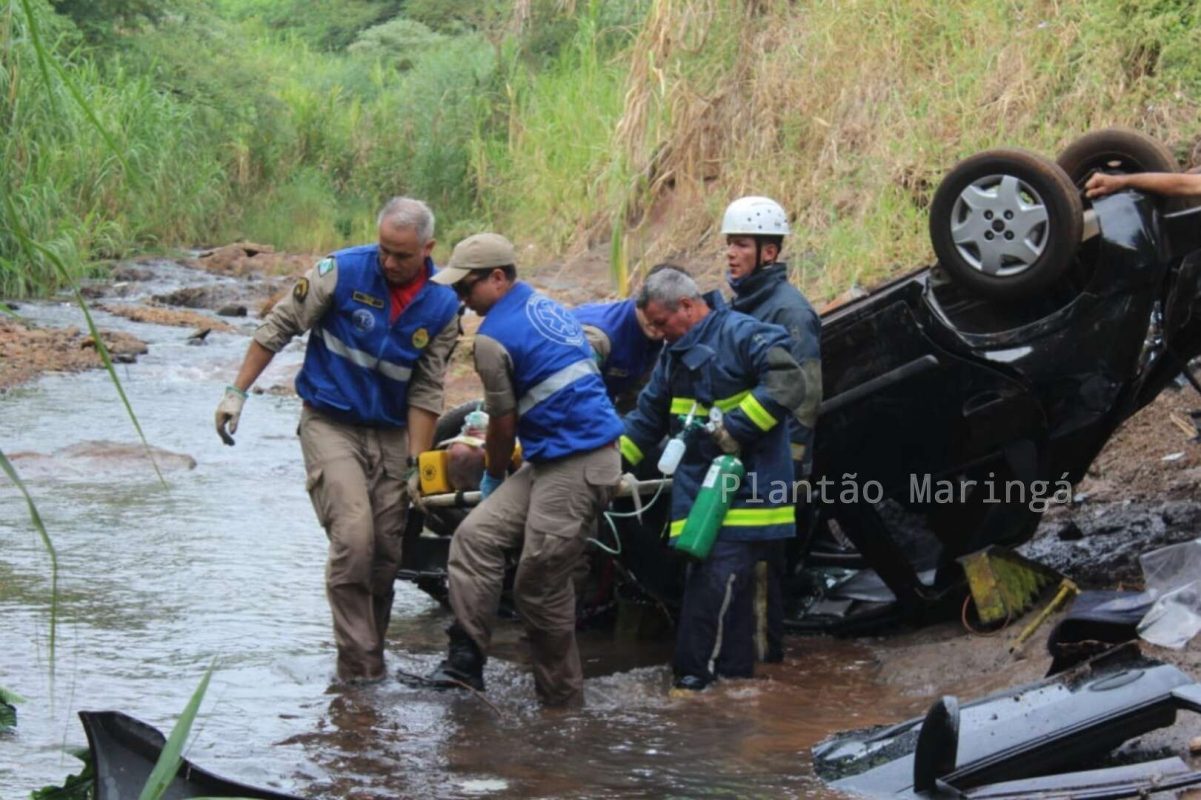 Um carro caiu em um pequeno Rio no final da Rua Pioneiro Olinto Mariani, no Jardim Diamante em Maringá, na manhã deste domingo, de páscoa dia (21). de acordo com testemunhas, o acidente aconteceu por volta de 8h.