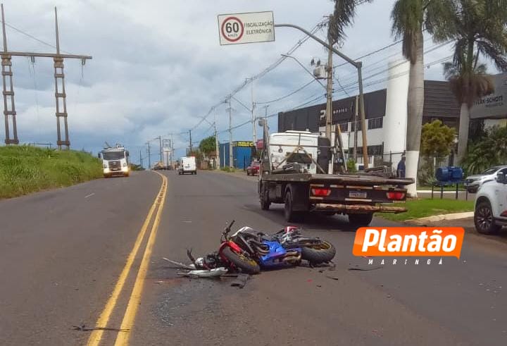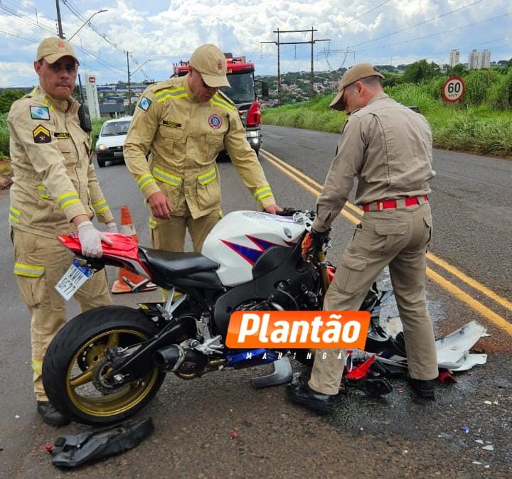 Um grave acidente de trânsito foi registrado na tarde desta sexta-feira (09) no Contorno Sul de Maringá, nas proximidades da Avenida Carlos Corrêa Borges. A colisão envolveu um automóvel e uma motocicleta de alta cilindrada.