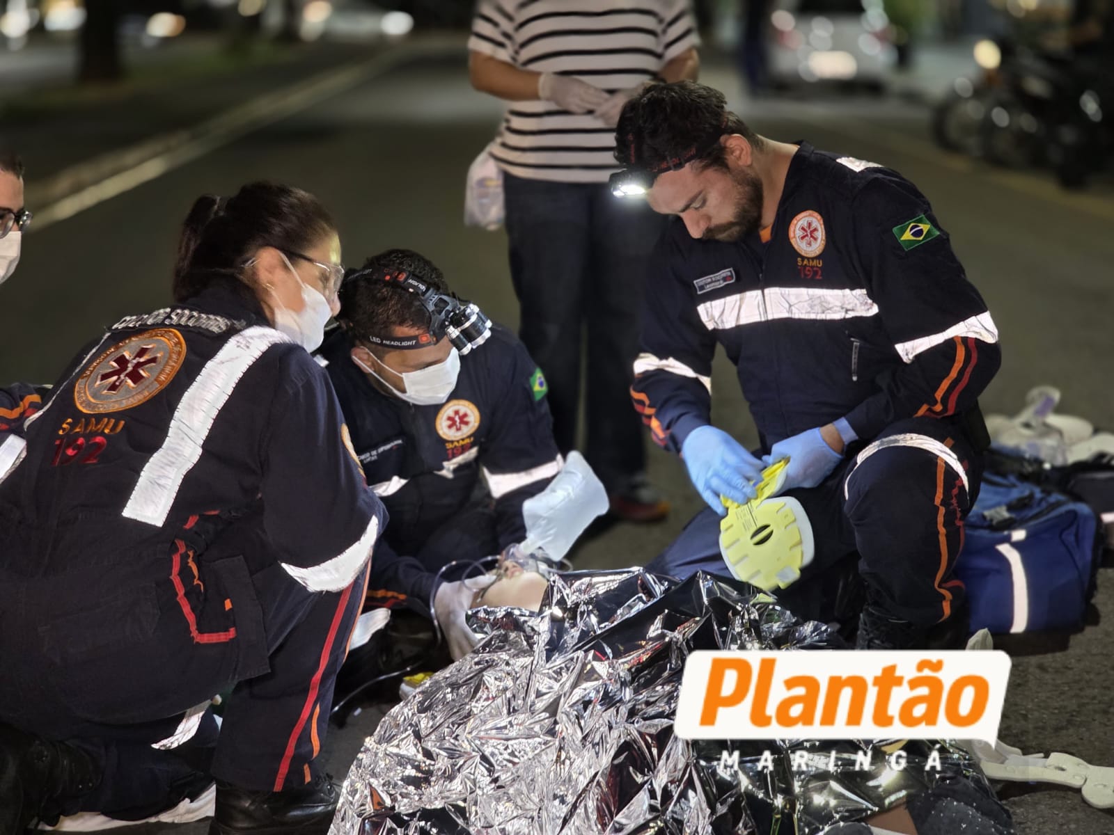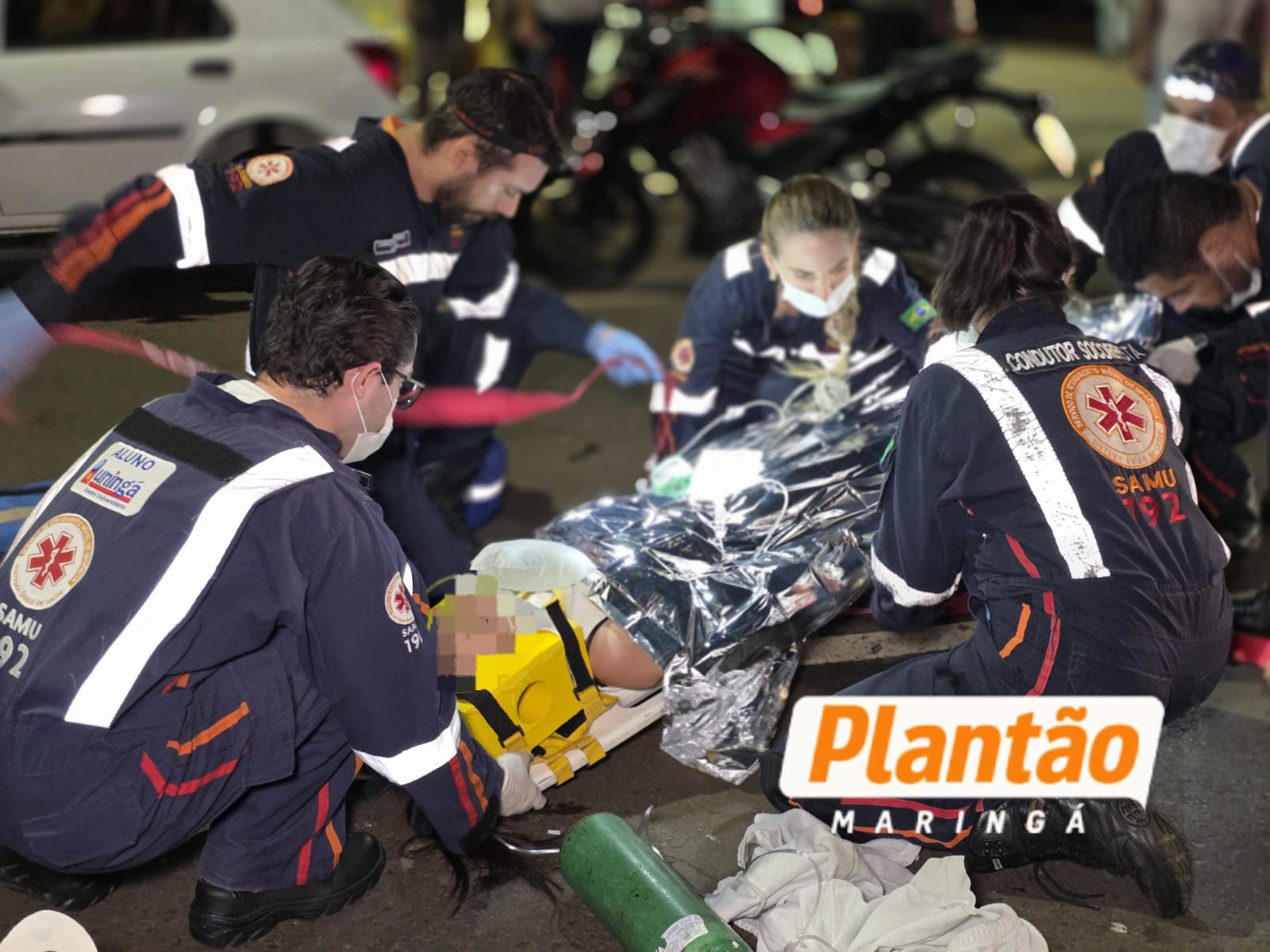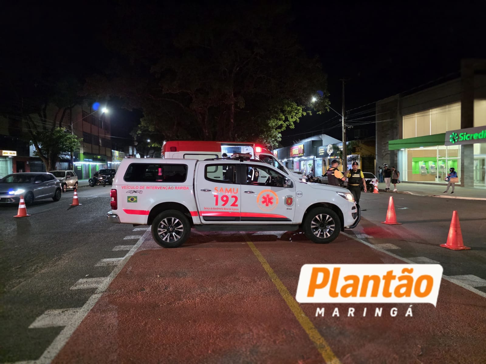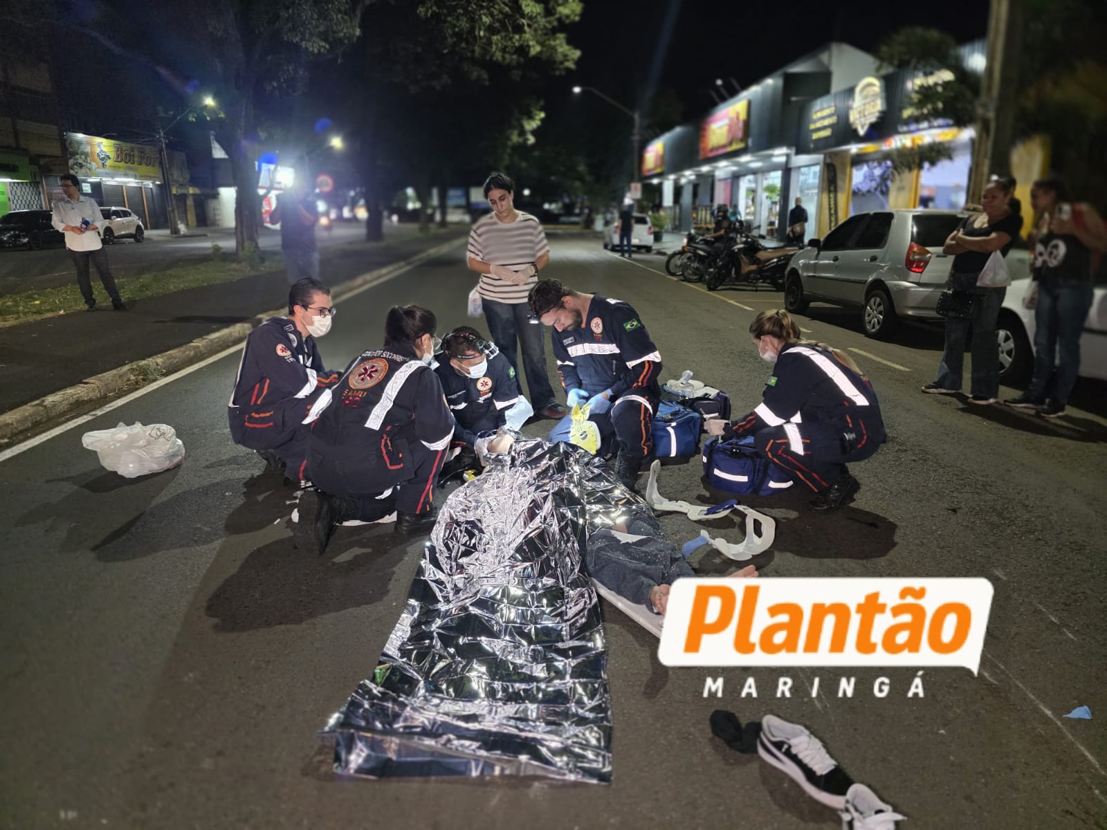 Um grave acidente envolvendo uma motocicleta e uma bicicleta foi registrado no começo da noite desta quarta-feira, 22, na Avenida Brasil, nas proximidades da Praça Sousa Naves e da rodoviária de Maringá.