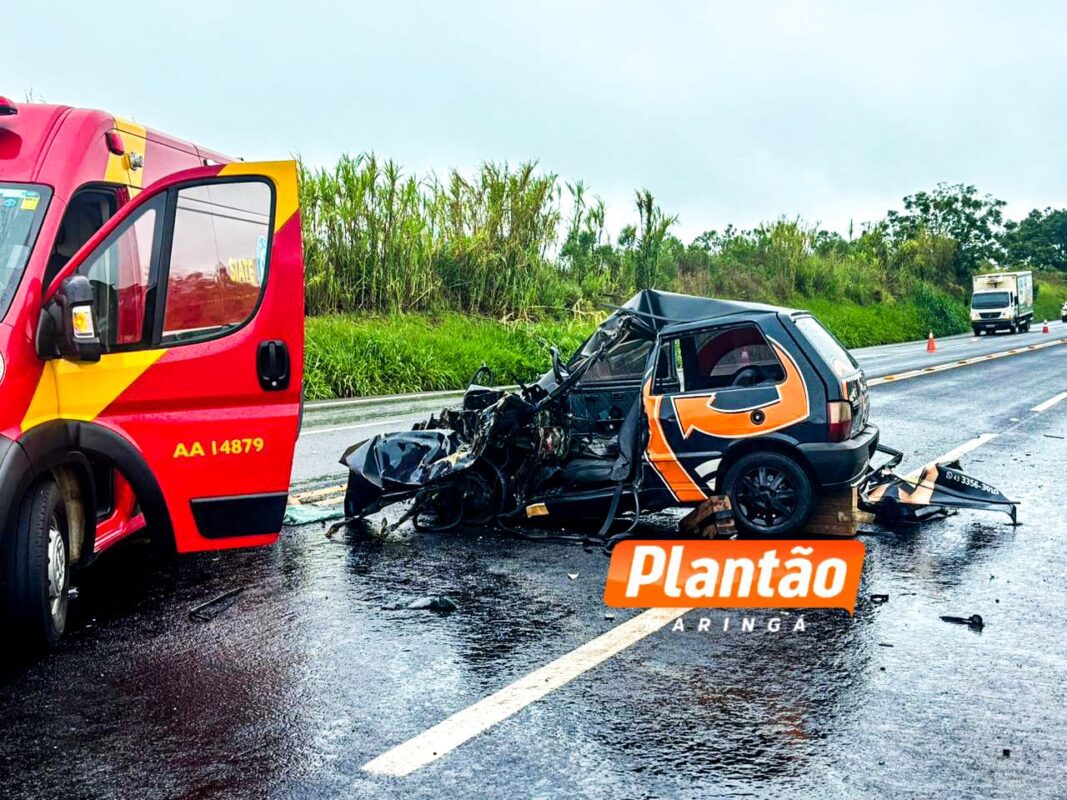 O acidente envolveu um carro e um caminhão. De acordo com as informações, o carro teria invadido a pista contrária e se chocado contra o caminhão.