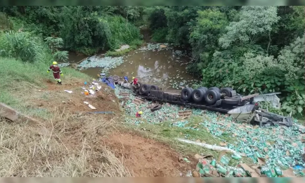 Centenas de latas de cerveja ficaram espalhadas pela água e às margens do rio. A PM, acionada para prestar apoio, relatou que o grupo ignorou a gravidade da situação e a presença do cadáver para furtar a mercadoria.