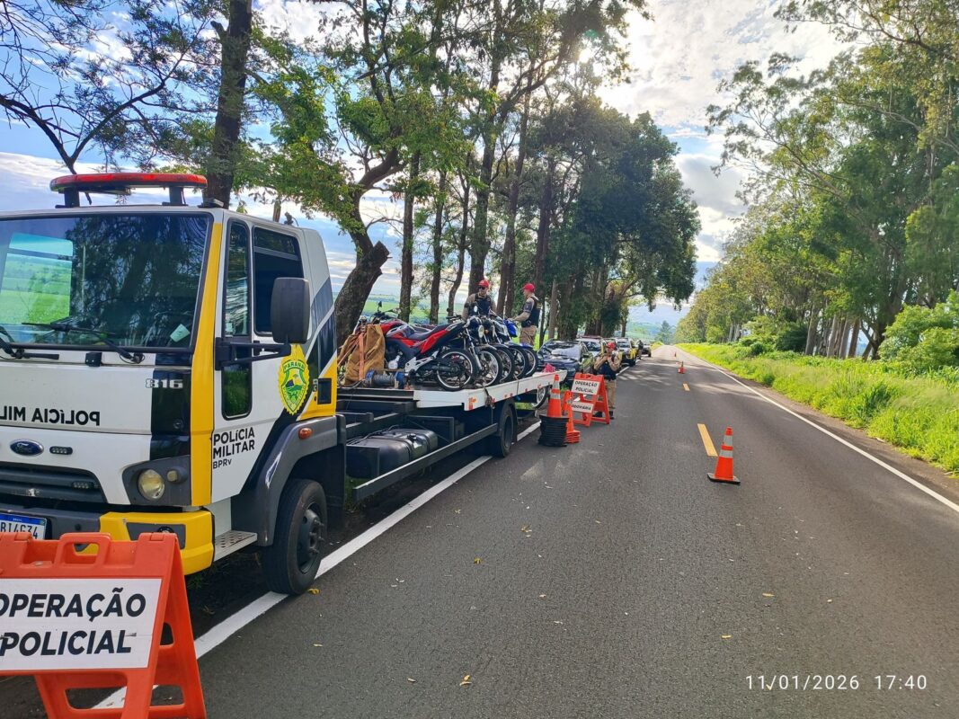 Uma operação conjunta realizada na tarde deste domingo (11) reforçou a fiscalização de motocicletas na rodovia PR-458, no município de Santa Fé, no noroeste do Paraná. A ação, denominada Operação Rolezinho, ocorreu entre 15h e 19h, no km 15, após denúncias feitas por moradores de Santa Fé e Guaraci.