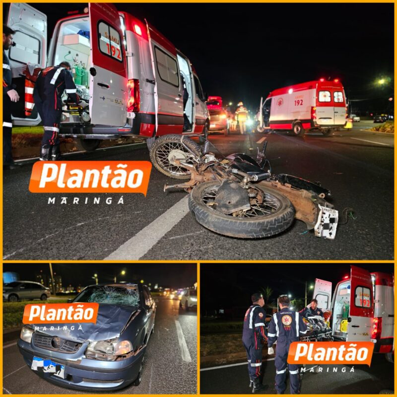 O Serviço de Atendimento Móvel de Urgência (Samu) e o Corpo de Bombeiros prestaram socorro no local e encaminharam a vítima ao Hospital Universitário de Maringá.O motorista do Gol sofreu cortes na mão causados pelos estilhaços do para-brisa quebrado no momento do atropelamento. Já a motocicleta, que permaneceu caída na pista, acabou sendo atingida por um Renault Kwid. O condutor deste veículo não se feriu.