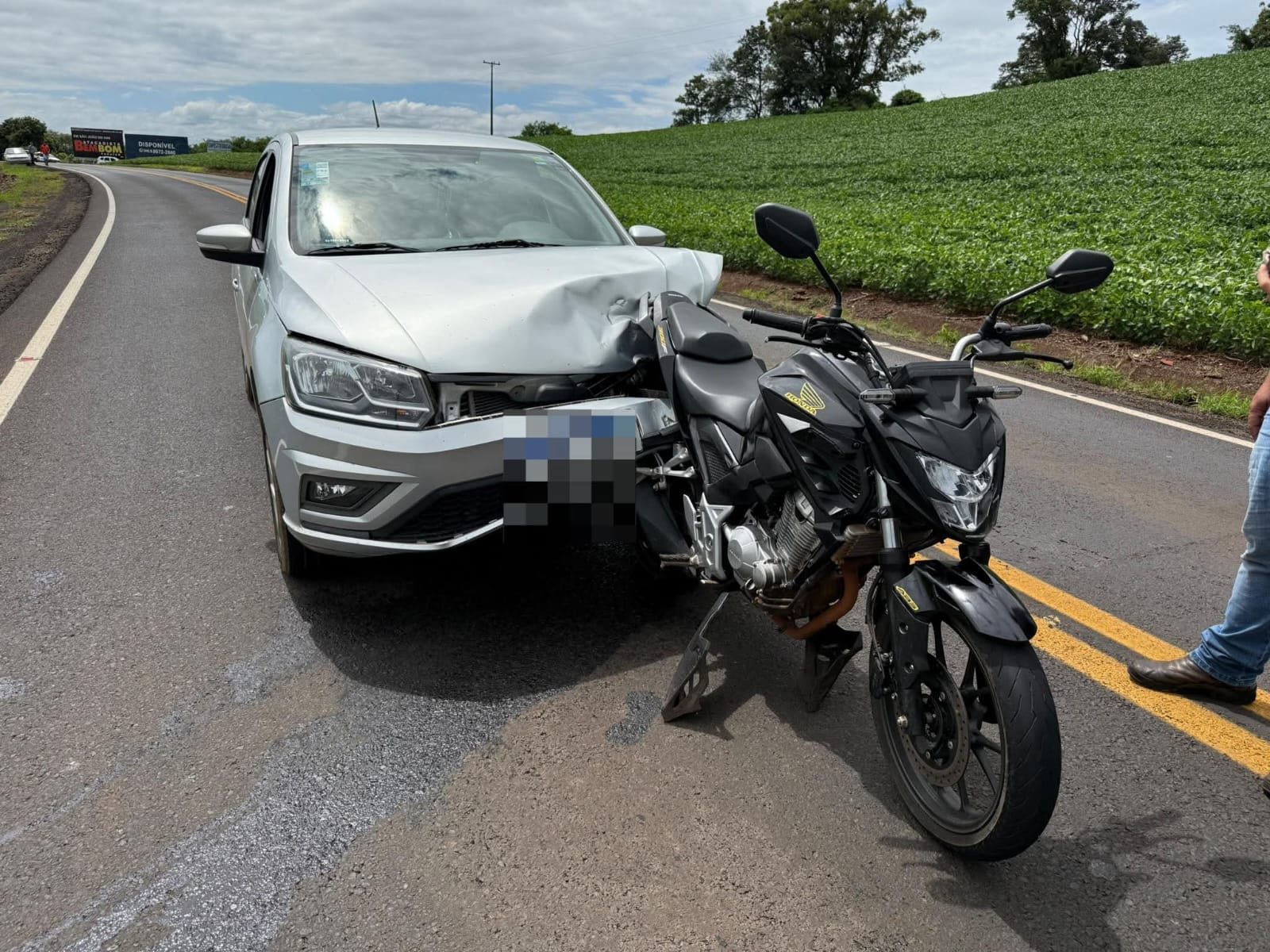 Logo em seguida, o jovem entrou em um carro e passou a seguir os assaltantes, conseguindo alcançá-los nas proximidades do conhecido “chalé”, a cerca de dois a três quilômetros da área urbana, no sentido do trevo da Polícia Rodoviária. Ao jogar o veículo contra a motocicleta, os suspeitos caíram e abandonaram o meio de transporte, fugindo a pé em direção a uma área de mata.