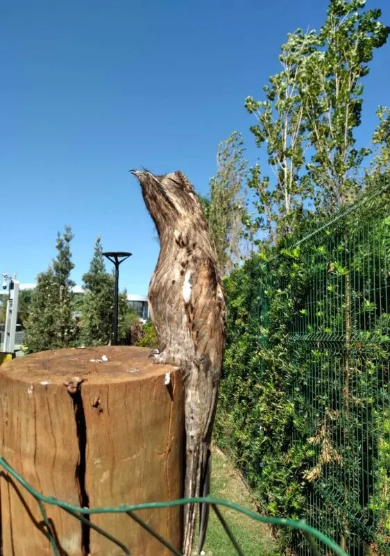 Durante o dia, o urutau se torna praticamente invisível. Fica imóvel sobre troncos ou galhos secos, com o corpo estendido e a cabeça erguida, imitando a continuidade do galho. “A plumagem acinzentada e manchada permite que ele se confunda perfeitamente com o ambiente. É uma camuflagem tão eficaz que muitas vezes passa despercebido até por quem está bem próximo”, explica o professor.