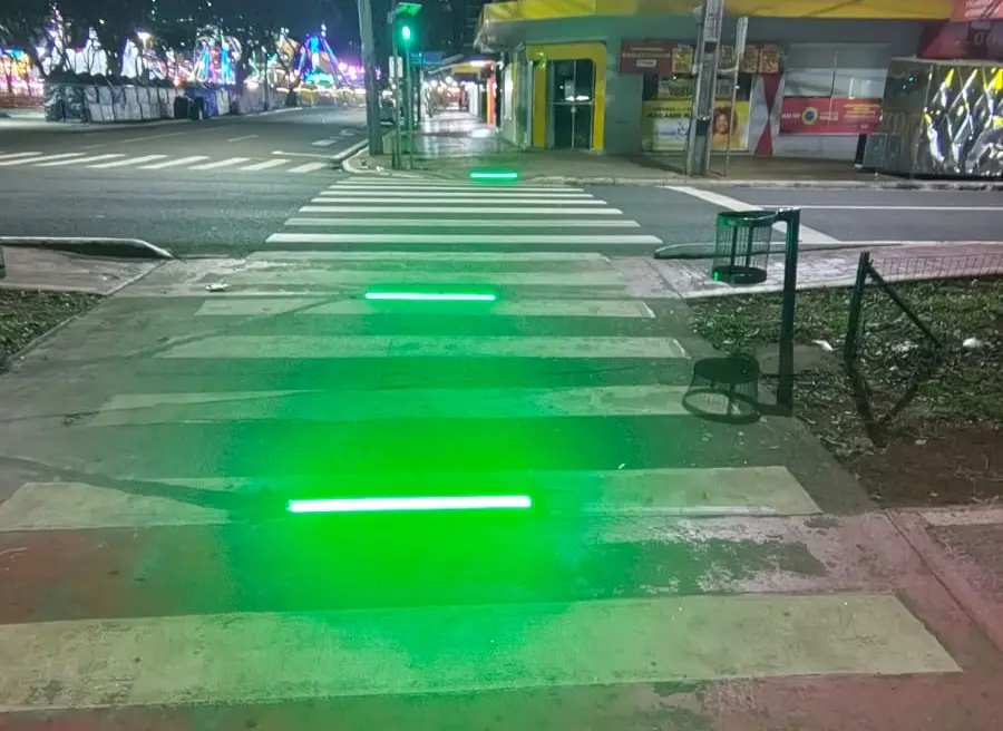 A Prefeitura de Maringá, por meio da Secretaria de Mobilidade Urbana, instalou nesta quinta-feira, 4, barras de LED nas faixas de pedestres da travessa Júlio de Mesquita Filho, no cruzamento com a Avenida Brasil. Nas próximas semanas, o dispositivo também será implantado no cruzamento da Avenida Brasil com a Travessa Guilherme de Almeida. A tecnologia, que está em fase de teste, busca reforçar a segurança dos pedestres.