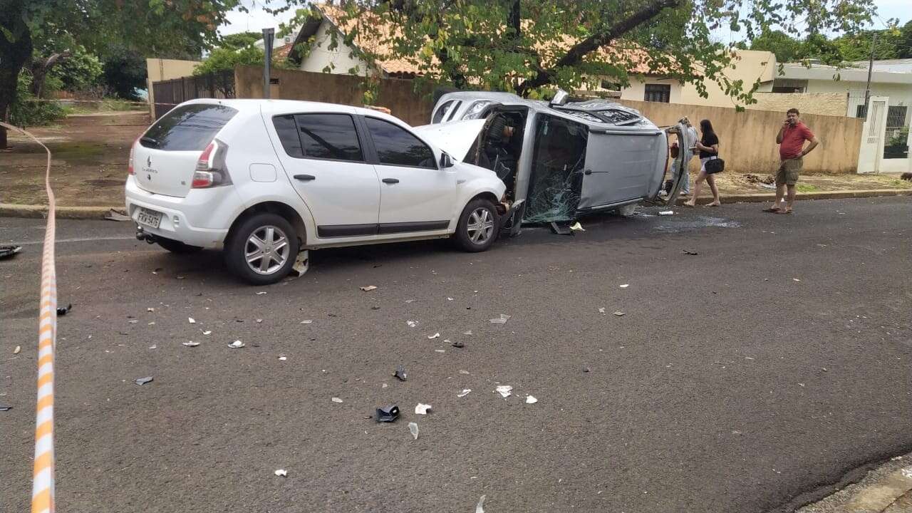 Uma colisão seguida de capotamento no cruzamento da Rua Cambé, com a Rua Cariovaldo Ferreira, no Jardim Aeroporto em Maringá, deixou duas pessoas feridas. de acordo com informações de testemunhas, um dos veículos teria avançado a preferencial e causado o acidente. Com o impacto da batida, o Chevrolet Trailblazer capotou.