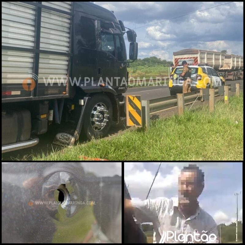 De acordo com a Polícia Militar, o caminhoneiro carregou 19 cabeças de bois em Paranavaí e seguia em direção à região Metropolitana de Curitiba. Próximo ao Distrito de Iguatemi, ao tentar desviar de pneus caídos na pista, o motorista acabou fechando um motociclista, desencadeando uma breve discussão antes de ambos seguirem viagem.