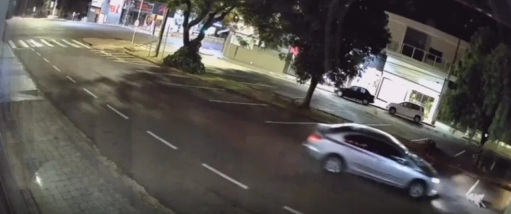 Imagens de câmeras de segurança mostram um Honda Civic prata atropelando o animal, que costuma permanecer no local, na noite deste domingo (1º), em Ivaiporã. Segundo o delegado Erlon Ribeiro, há indícios de que o ato possa ter sido proposital.