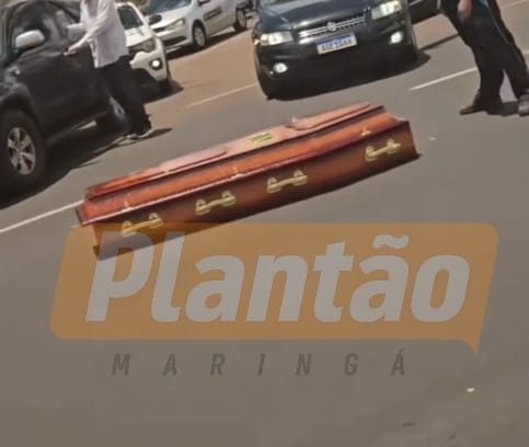 Um caixão, com um corpo dentro, caiu de um carro funerário enquanto o veículo trafegava pela via. Motoristas que passavam pelo local registraram o momento, que rapidamente se espalhou nas redes sociais.