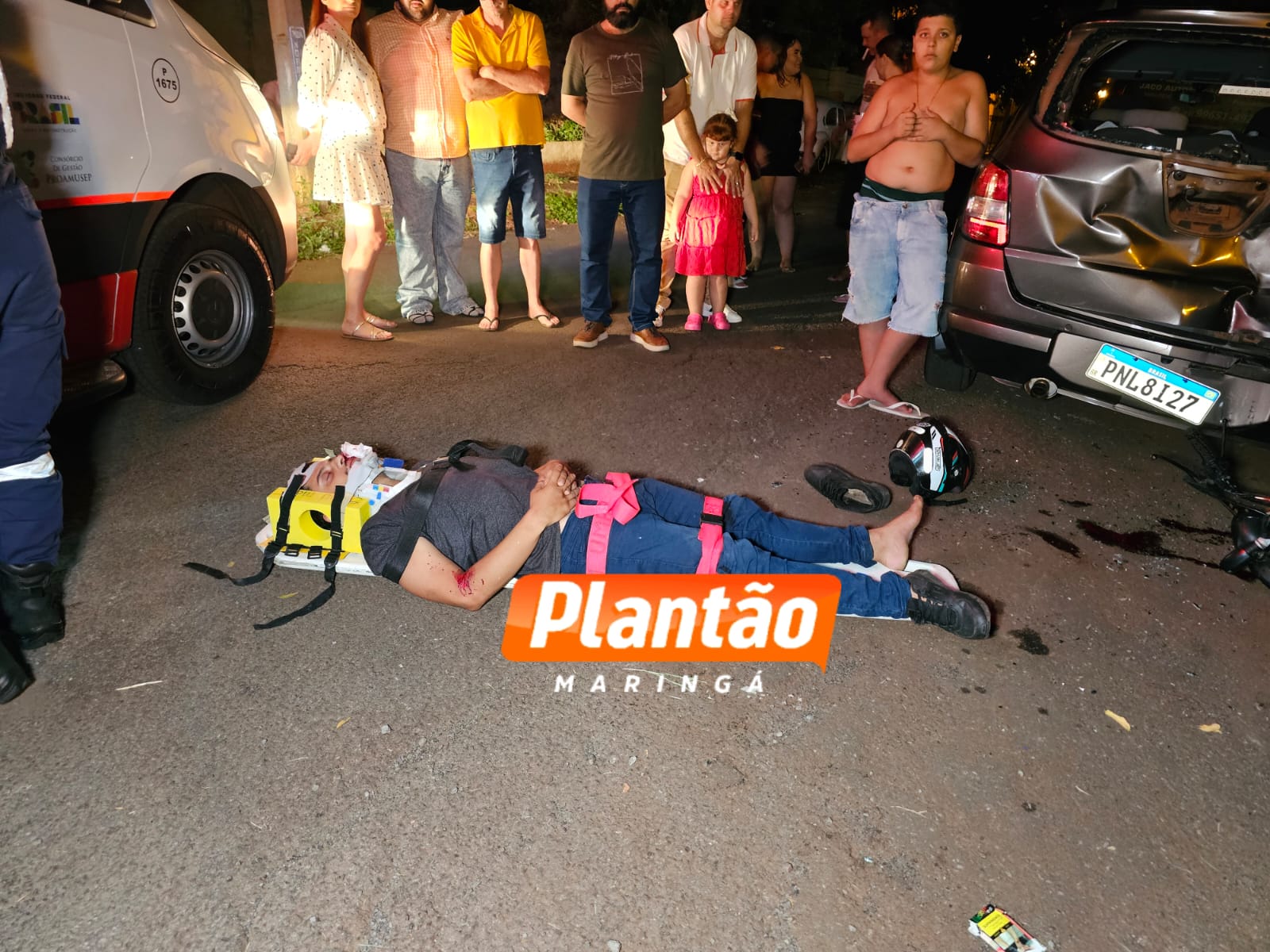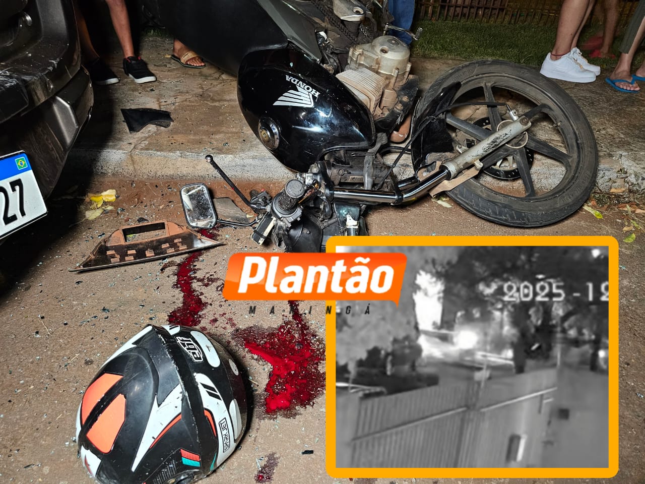 A equipe médica do SAMU prestou atendimento no local e encaminhou a vítima ao Hospital Universitário de Maringá. Uma câmera de segurança registrou o momento do acidente.