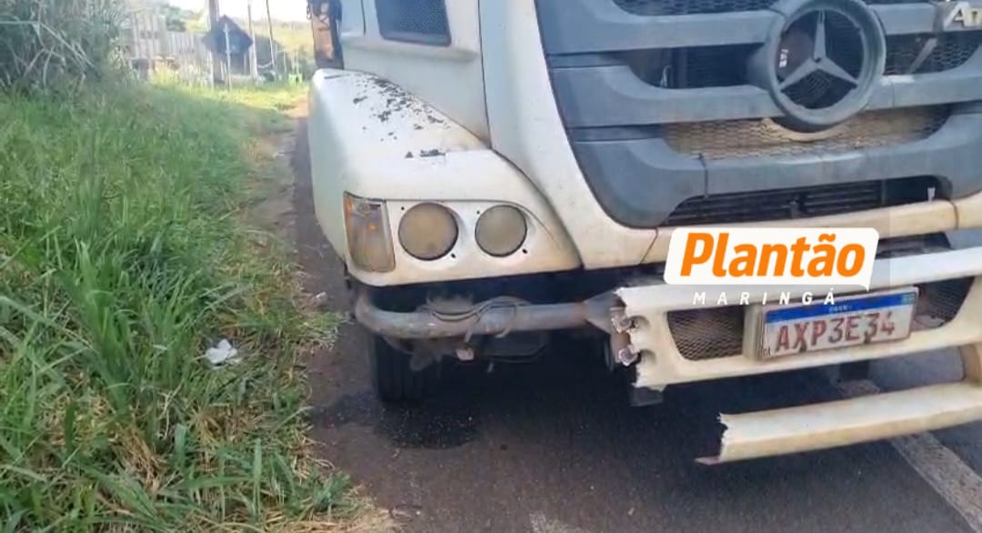 Imagens de uma câmera de segurança registraram uma colisão impressionante entre uma carreta e um carro na tarde da última sexta-feira (21), na rodovia PR-317, em Maringá.