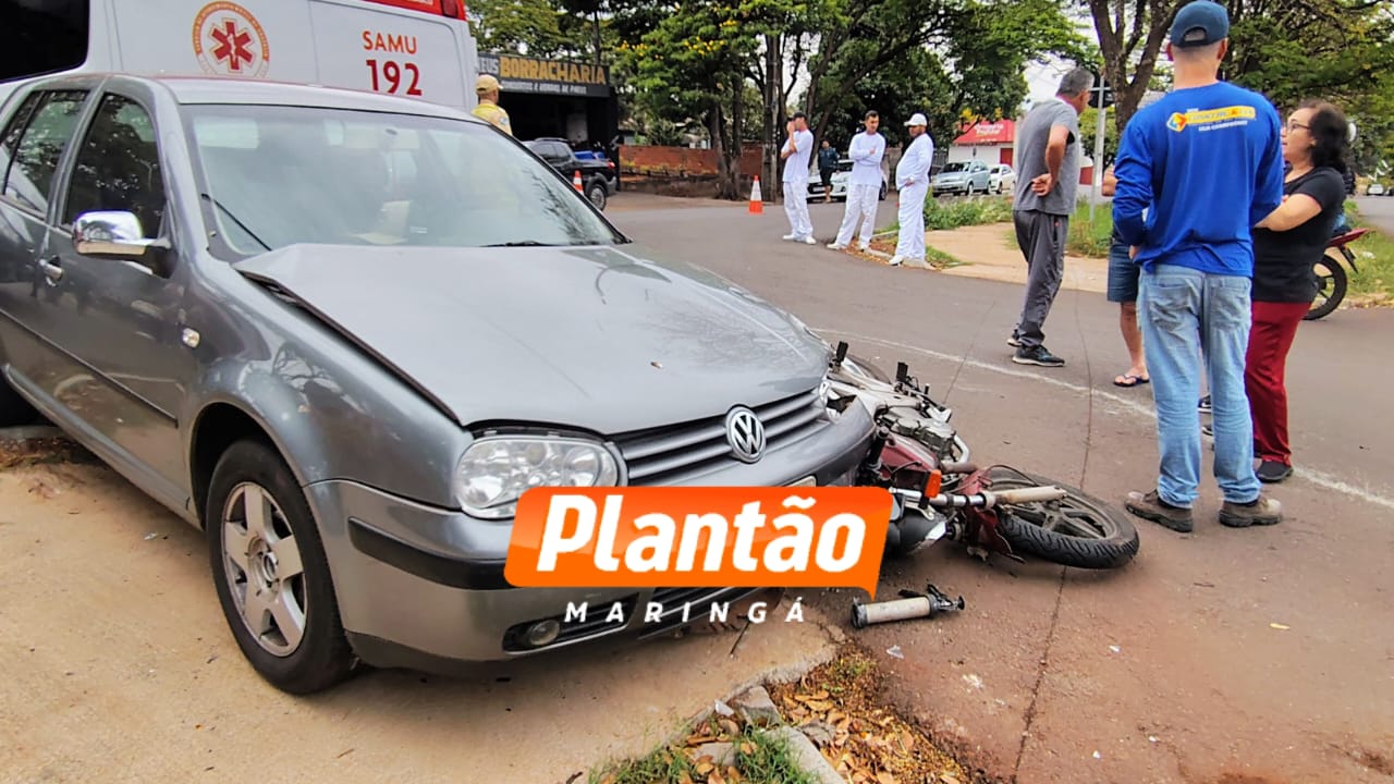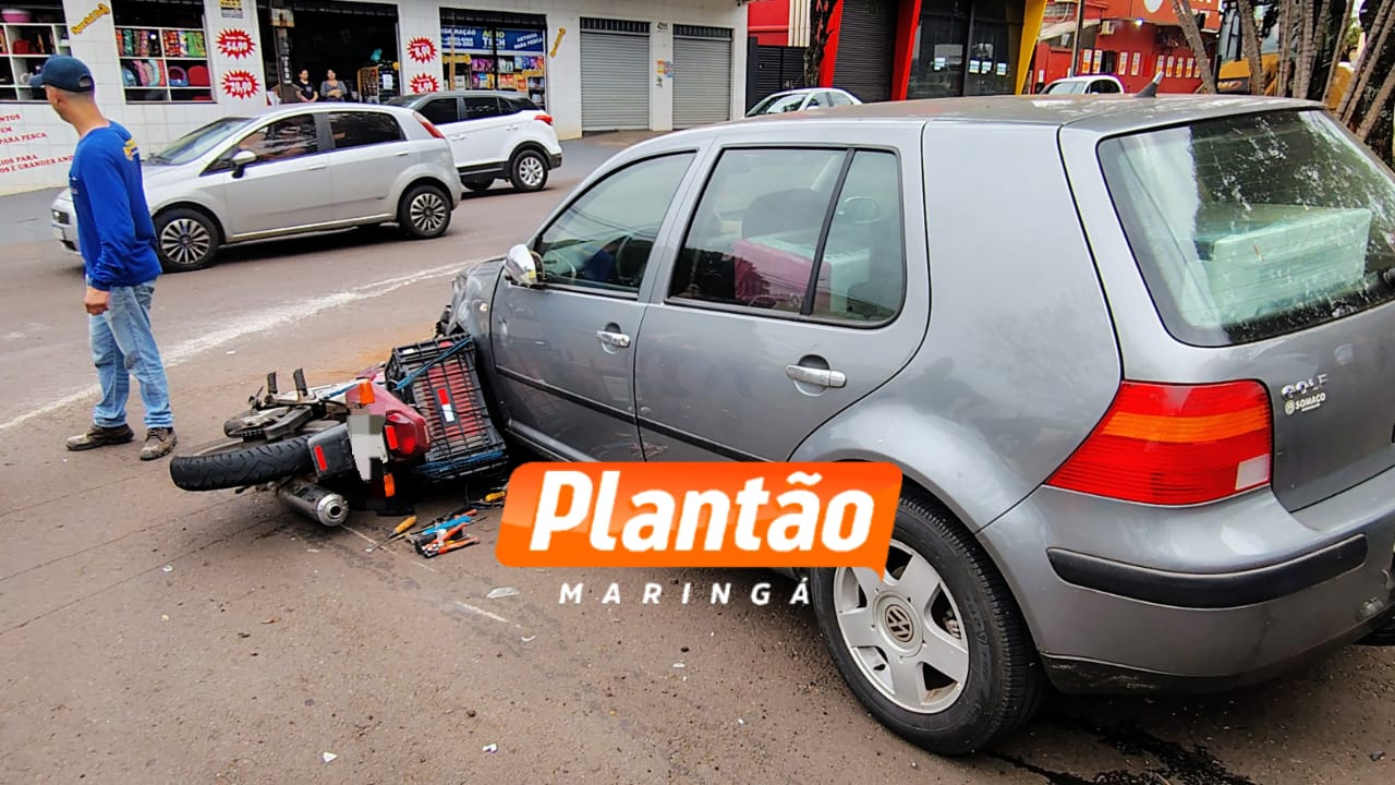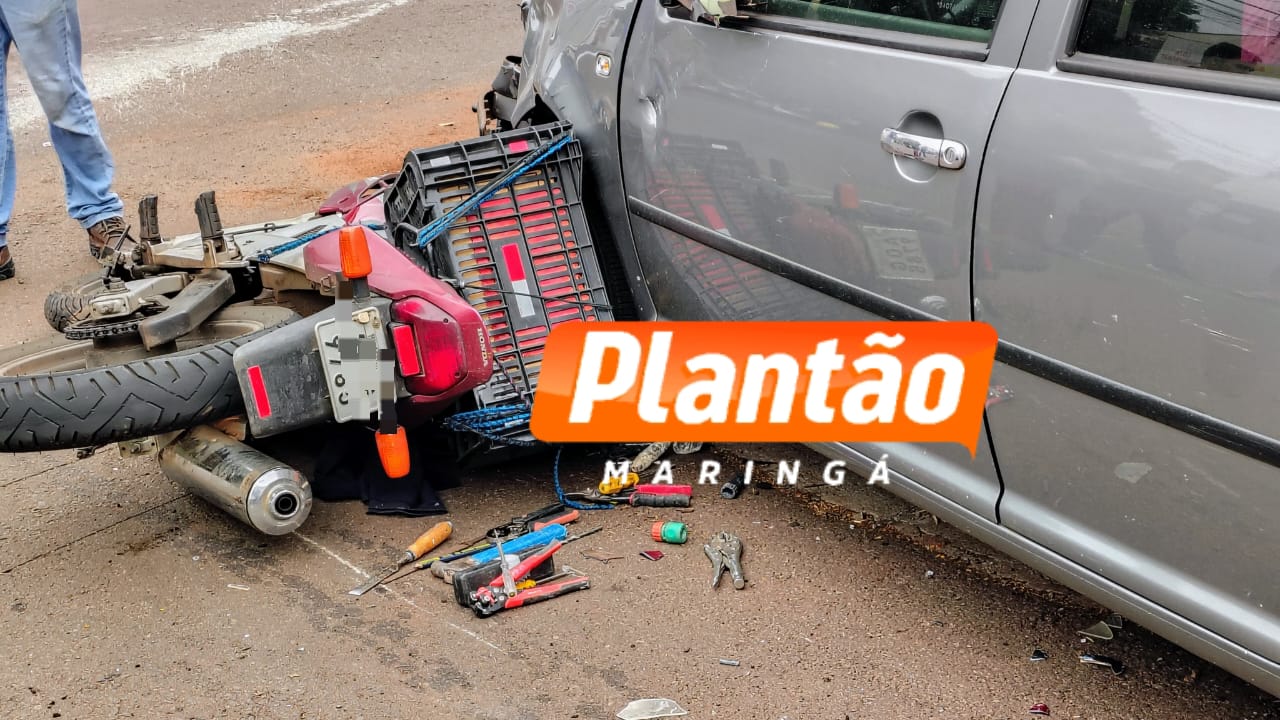Um grave acidente foi registrado na manhã desta quarta-feira (8) no cruzamento da Avenida Tuiuti com a Rua Rio Jordão, no Jardim Champagnat, em Maringá. A colisão envolveu um carro e uma motocicleta. Imagens de uma câmera de segurança mostram o momento em que o motorista do automóvel avança a preferencial e atinge o motociclista, que seguia pela via. Com o impacto, o condutor da moto, de 65 anos, foi arremessado e sofreu múltiplas fraturas nas pernas.