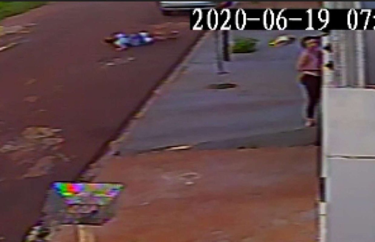 Imagens de câmeras de segurança registou um homem matando um cachorro a pauladas no meio de uma rua, no Jardim Kusumoto, em Sarandi.