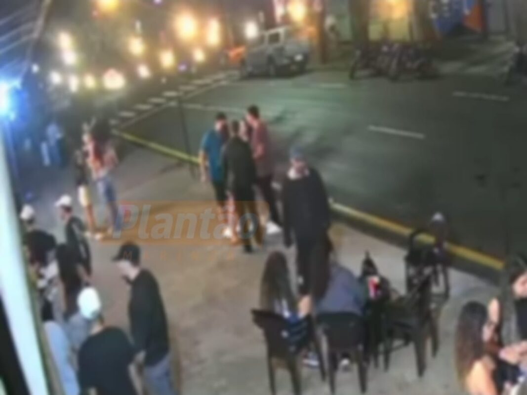 Uma câmera de segurança registrou o momento em que um jovem de 20 anos foi baleado na madrugada deste sábado (24), no cruzamento da Avenida Paranaguá com a Rua Bragança, em Maringá. O crime ocorreu por volta das 5h.