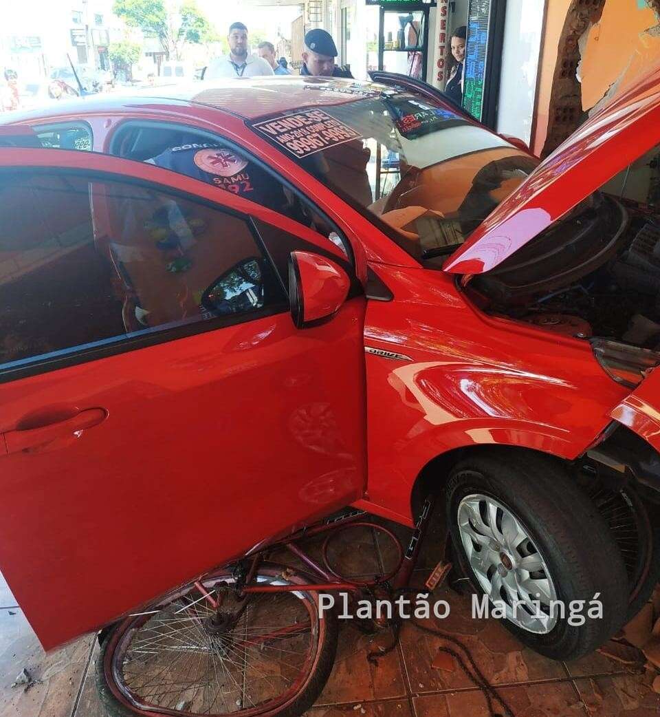 Nas imagens, o veículo desgovernado sobe na calçada e bate contra uma bicicleta e invade a loja. Segundo informações de testemunhas o motorista apresentava sinais de embriaguez. Ninguém ficou ferido no acidente.