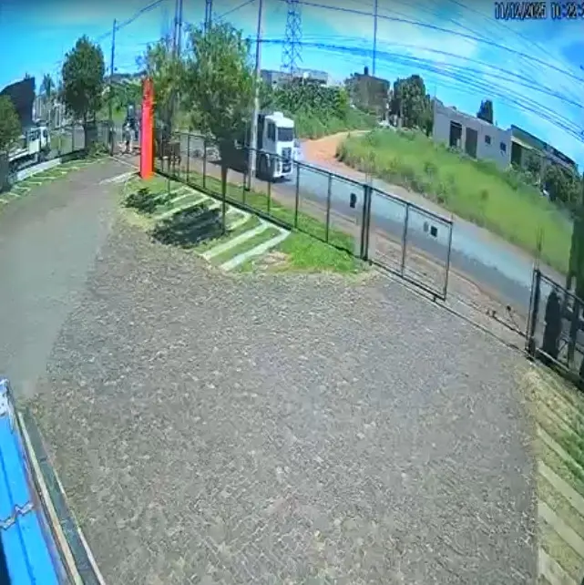 O incidente ocorreu por volta das 11h30, quando a tampa traseira do veículo — que seguia sentido Sarandi — se abriu, possivelmente por estar mal encaixada, derrubando uma grande quantidade de vidro na pista.