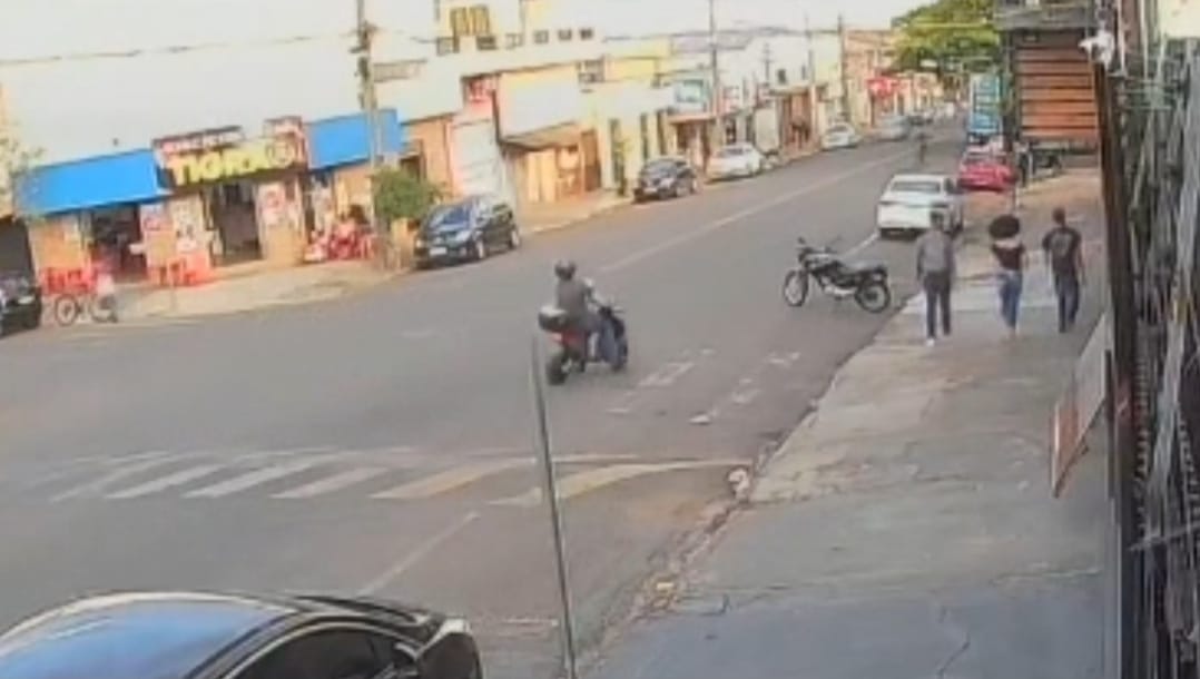 Imagens de uma câmera de segurança flagraram o exato momento em que a vítima perdeu o controle do veículo e se chocou contra uma moto que estava estacionada. Com o impacto, o capacete se desprendeu e o homem bateu a cabeça com força contra o asfalto.
