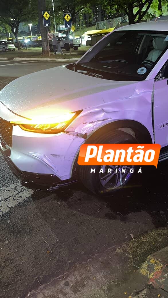 Uma câmera de segurança flagrou um acidente de trânsito registrado na noite da última quarta-feira (1º), no cruzamento da Rua Otávio Perioto com a Avenida Herval, em Maringá.