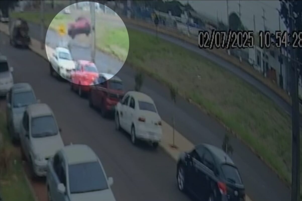 Um grave acidente foi registrado na manhã desta quarta-feira (02), na BR-323, no trecho que passa pelo município de Paiçandu, no noroeste do Paraná. Uma câmera de segurança flagrou o momento exato em que um veículo capotou diversas vezes antes de parar na marginal da rodovia.