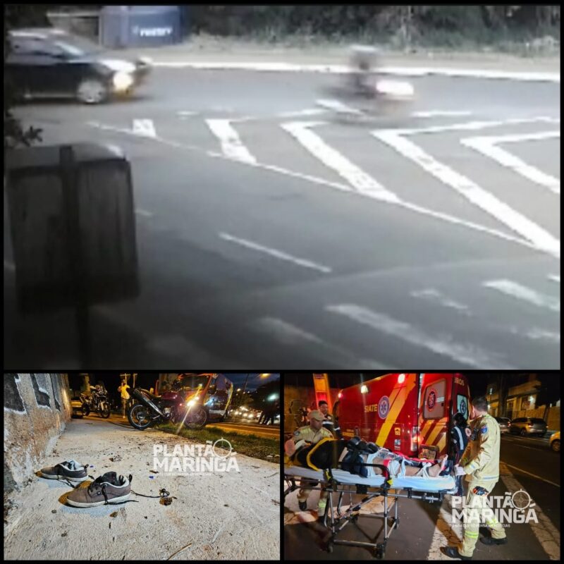 Uma câmera de segurança registrou o momento em que Felipe de Oliveira Neves, de 26 anos, sofreu um gravíssimo acidente de trânsito registrado no início da noite de quarta-feira, 15, no cruzamento da Rua Alencar de Oliveira Paiva, com Avenida Doutor Mário Clapier Urbinati, na zona 7, em Maringá. Veja o vídeo abaixo