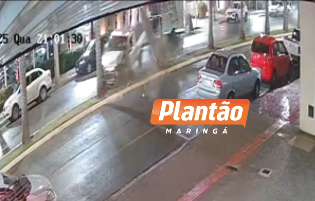 Uma câmera de segurança registrou o momento de um grave acidente de trânsito ocorrido na noite desta quarta-feira (12), na Avenida das Indústrias, no Jardim América, em Maringá. Três mulheres ficaram feridas após o carro em que estavam colidir violentamente contra duas palmeiras no canteiro central da via.