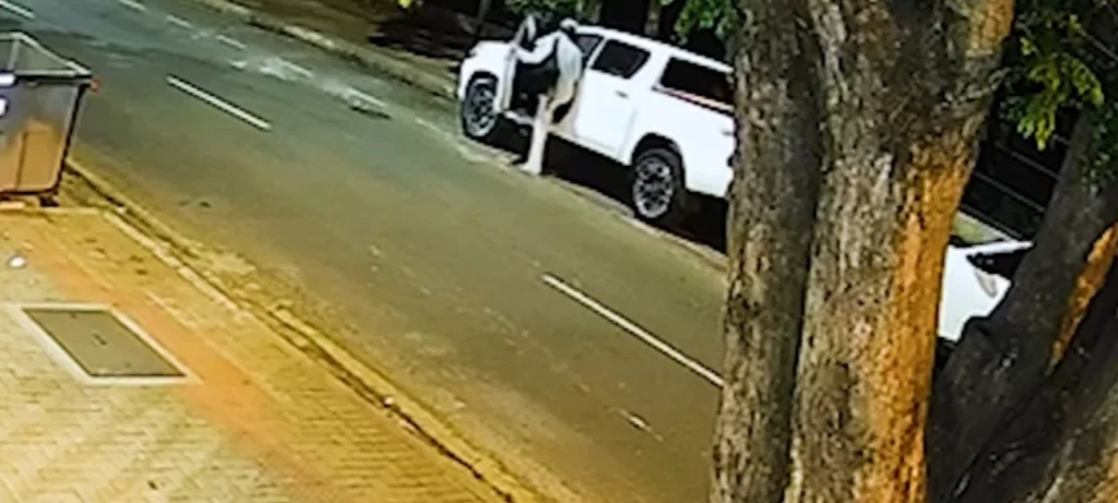 Nas imagens, é possível ver quando um dos homens se aproxima do veículo e circula ao redor dele. Em seguida, ele disfarça observando outro carro estacionado logo atrás. Momentos depois, o suspeito retorna para a Hilux, abre a porta e, em menos de dez segundos, consegue dar partida na caminhonete, fugindo em seguida.