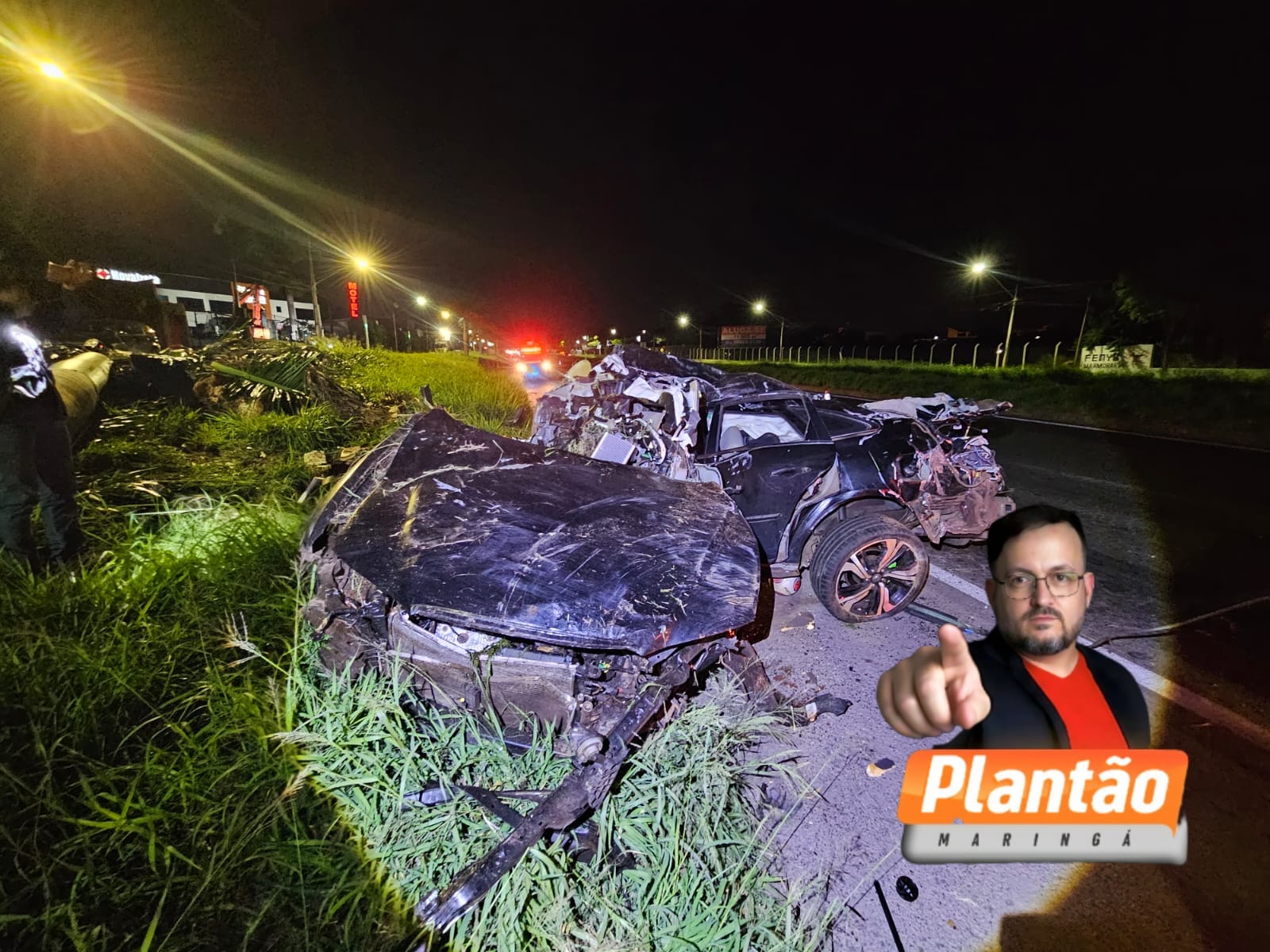 O motorista do veículo, que seguia no sentido Marialva, ao tentar desviar do pedestre, perdeu o controle da direção, subiu no canteiro central que divide a marginal da rodovia e capotou. O automóvel colidiu violentamente contra uma palmeira.