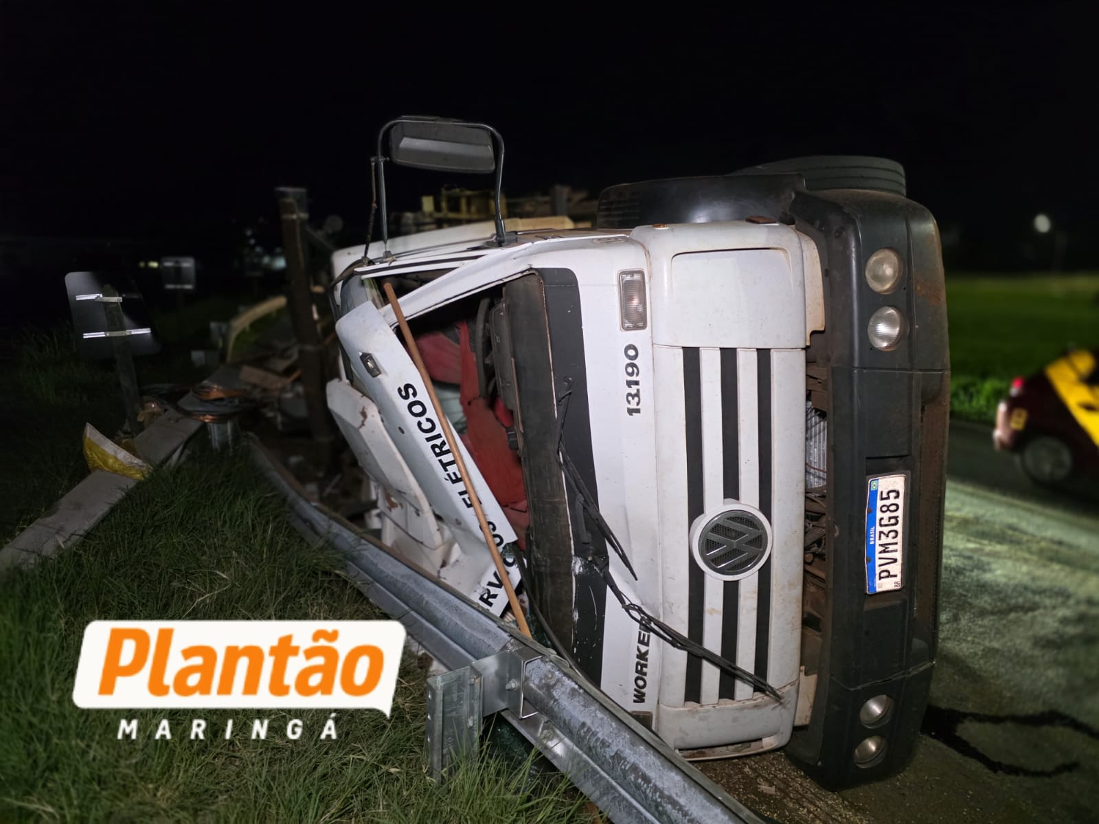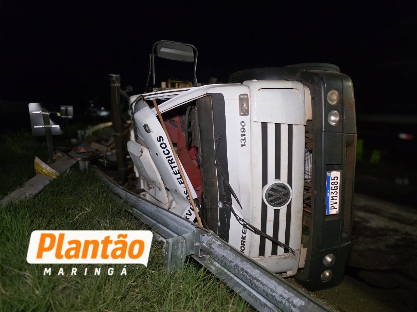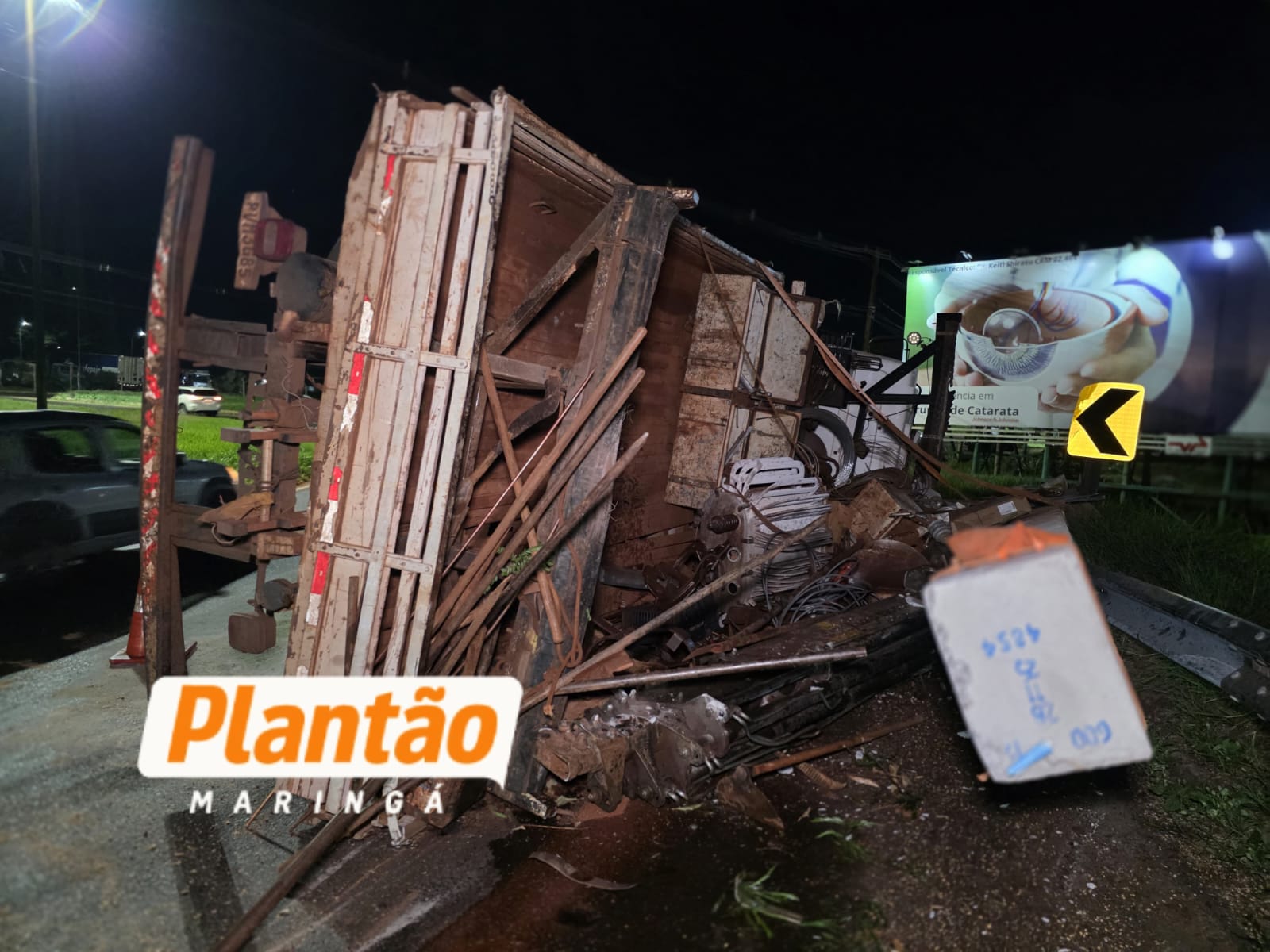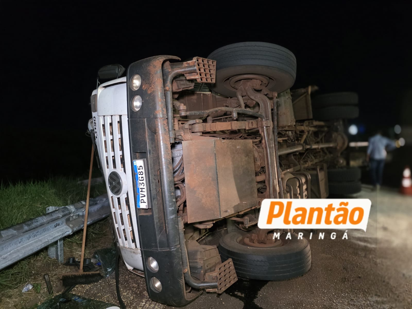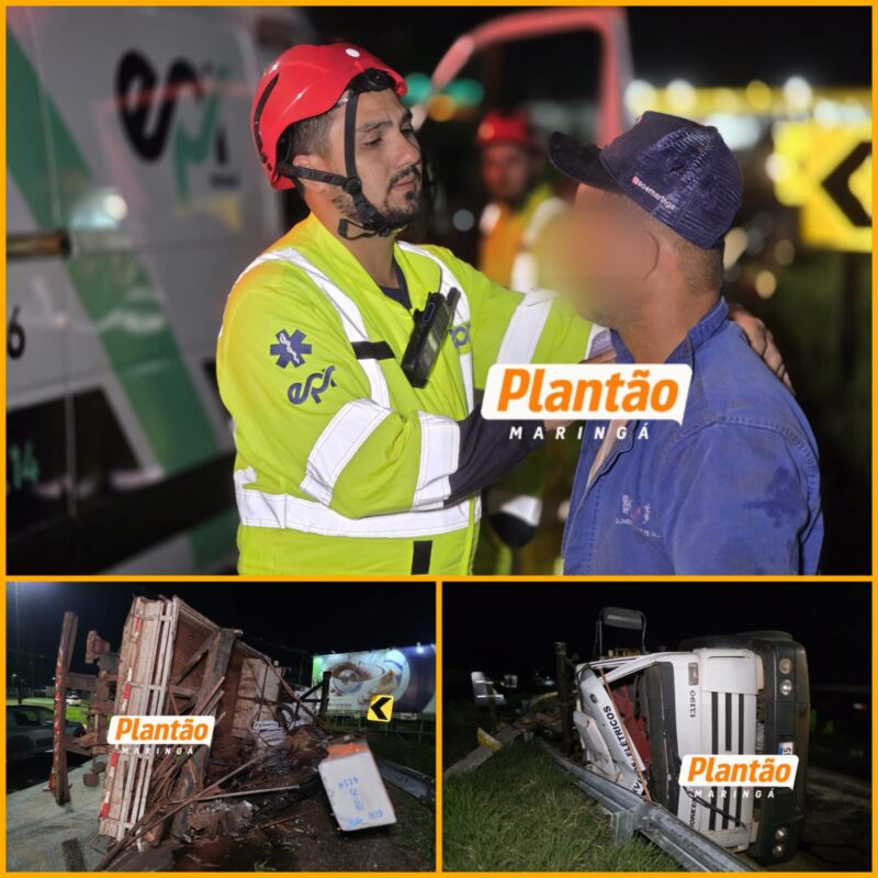 Um caminhão tombou na noite desta sexta-feira (20), na rotatória da Cocamar, na rodovia PR-317, em Maringá.