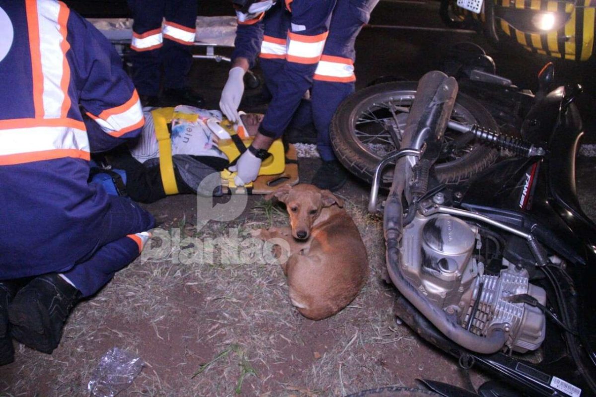 Durante o atendimento à vítima, uma cena inusitada chamou a atenção dos socorristas. Um cachorro deitou ao lado da vítima, e fez companhia ao motociclista durante o resgate. após a vítima ser colocada na ambulância, o animal desapareceu. A princípio o cachorro não seria da vítima.
