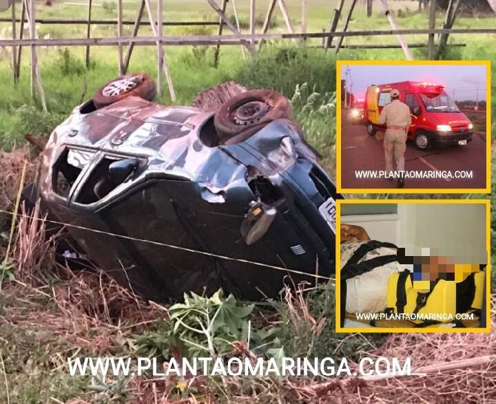 Duas pessoas ficaram feridas em um capotamento na BR-376, em Marialva, no final da tarde desta terça-feira (01).