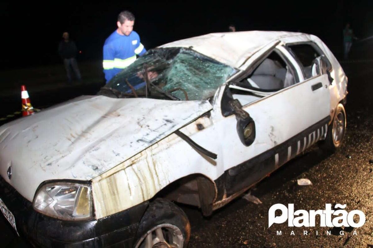Segundo a Polícia Rodoviária Federal (PRF), o veículo com placas de Maringá (PR) seguia em um trecho de reta da rodovia quando o condutor perdeu o controle da direção. O automóvel capotou várias vezes, invadindo a pista contrária.