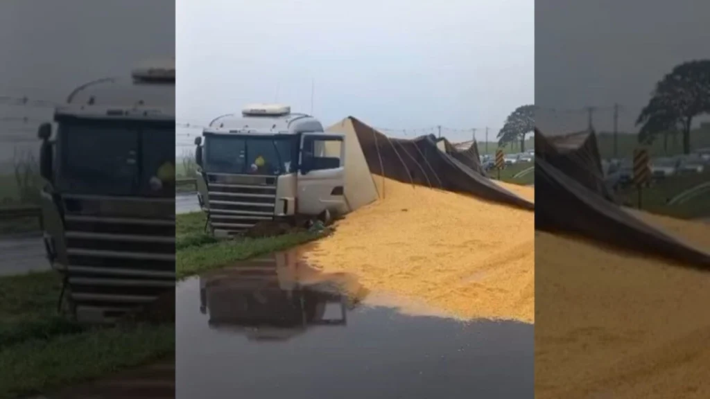 Segundo informações apuradas no local, a batida inicial envolveu ao menos três veículos carros. Uma carreta carregada com milho, que seguia pela rodovia, não conseguiu frear a tempo devido à pista molhada, chovia forte no momento do acidente. Para tentar evitar uma colisão ainda maior, o motorista desviou, mas acabou atingindo um veículo, outro carro logo em seguida, e a carreta tombou no canteiro central.