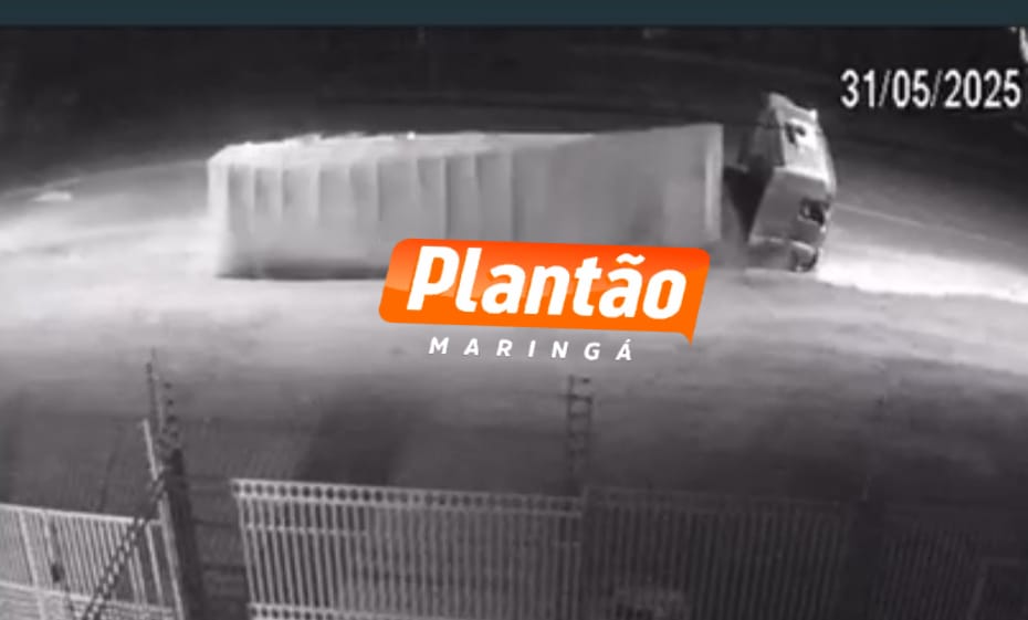 Mais uma carreta tombou na noite deste sábado (31) no Contorno Sul de Maringá, nas proximidades da fábrica de antenas Aquário, no Conjunto Porto Seguro.