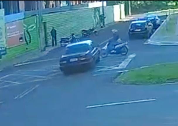 Imagens de uma câmera de segurança do Mercado Pet mostram o momento em que o veículo atravessa a avenida sem parar, provocando a colisão.