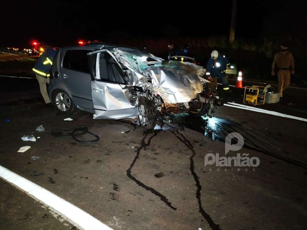 O motorista de um carro foi socorrido em estado grave após um acidente com uma caminhão na noite deste sábado (09), na rodovia BR-376, em Maringá. A batida foi no trevo de acesso a Coroaves.