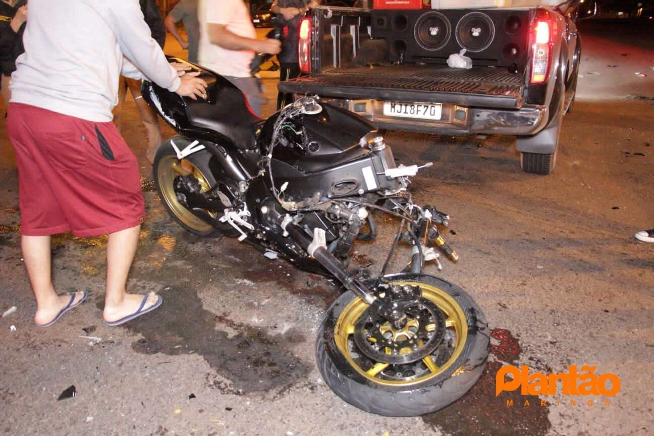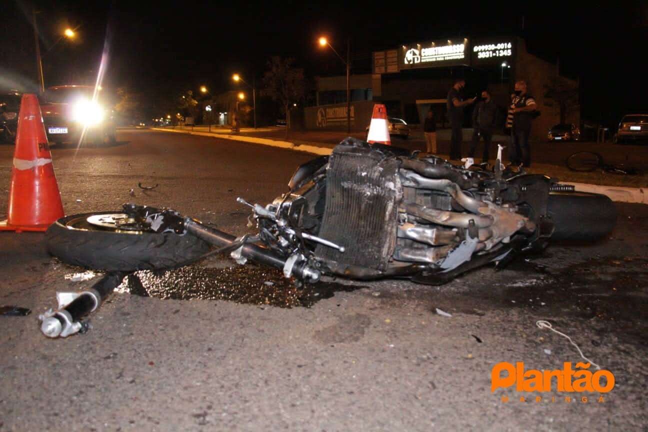 O motociclista identificado como Leonardo Martins Zan, de 19 anos, seguia com sua motocicleta Yamaha R1, pela Rua Pioneiro Nereu Mazzer, quando avançou a preferencial da Avenida Américo Belay e atingiu um Ford Ka. No carro ninguém ficou ferido.