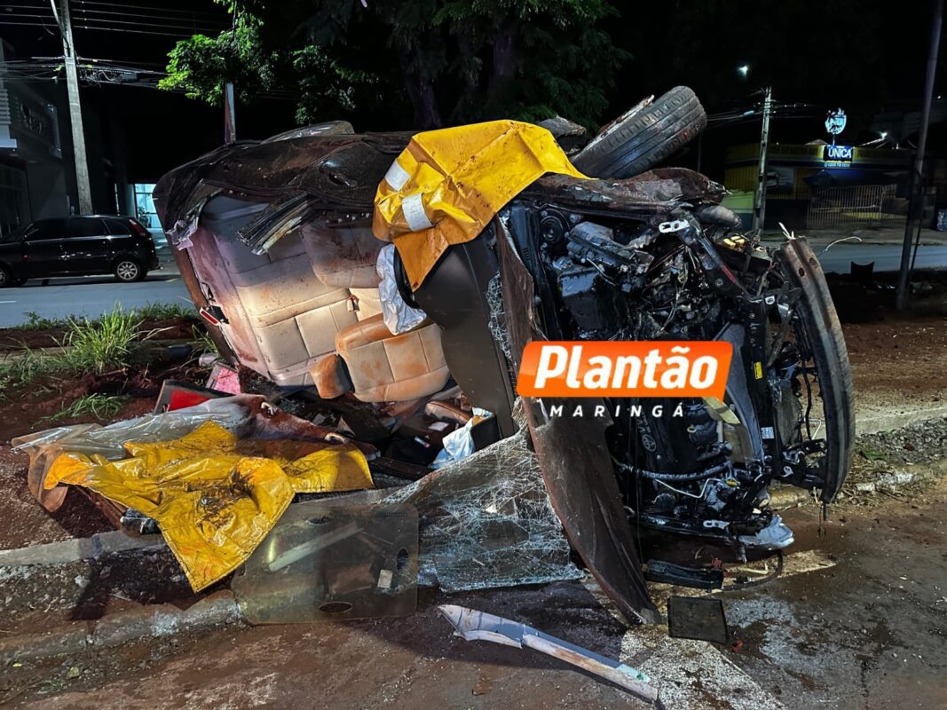 Um gravíssimo acidente foi registrado na madrugada deste domingo (1º) na Avenida Tuiuti, nas proximidades do Colégio Branca da Mota, em Maringá.