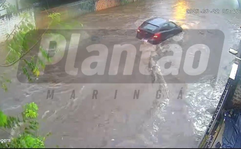 A forte chuva registrada na manhã desta segunda-feira (22) provocou alagamentos em diversas ruas do bairro Parque Alvamar, em Sarandi. Em um dos pontos mais críticos, um carro foi arrastado pela correnteza após, a motorista tentar atravessar a via completamente tomada pela água.