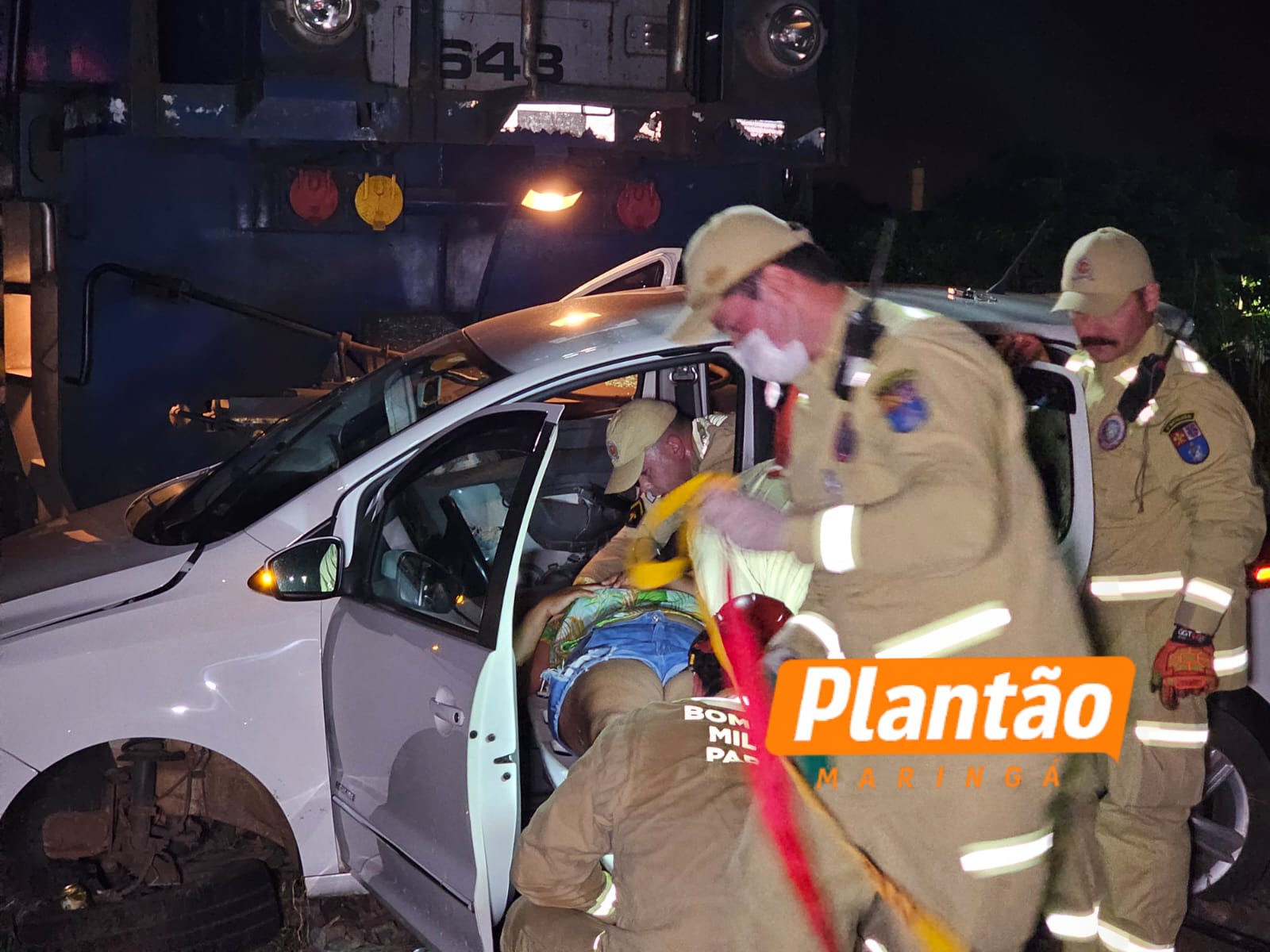 Com o impacto, o automóvel foi arrastado por quase 200 metros pela locomotiva e ficou com a lateral completamente destruída. O condutor sofreu ferimentos moderados e foi socorrido, sendo encaminhado a uma unidade hospitalar.