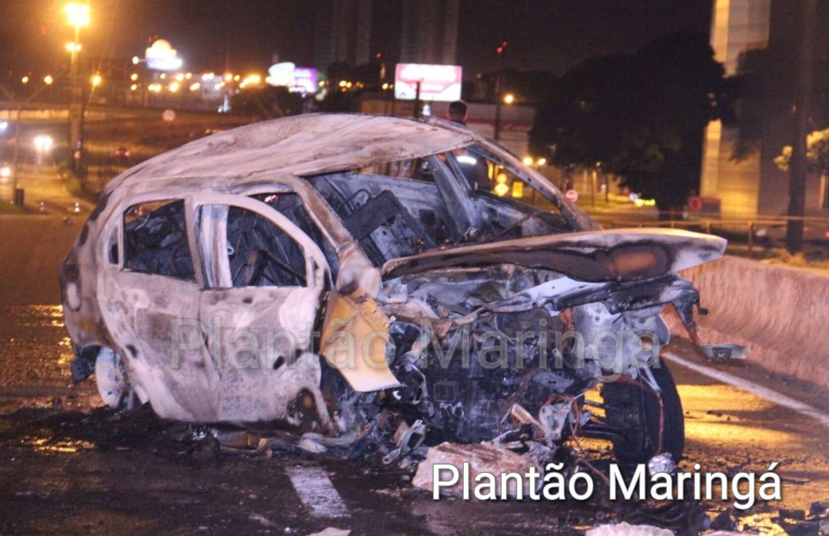 Infelizmente o condutor não conseguiu sair do carro, e morreu carbonizado. A princípio a vítima transitava pela via, no sentido Maringá-Sarandi. Sobre o viaduto da Avenida Tuiuti, ainda por motivos desconhecidos, o motorista bateu o carro no anteparo (mureta de proteção). Com a força do impacto o motor foi parar dentro do carro.