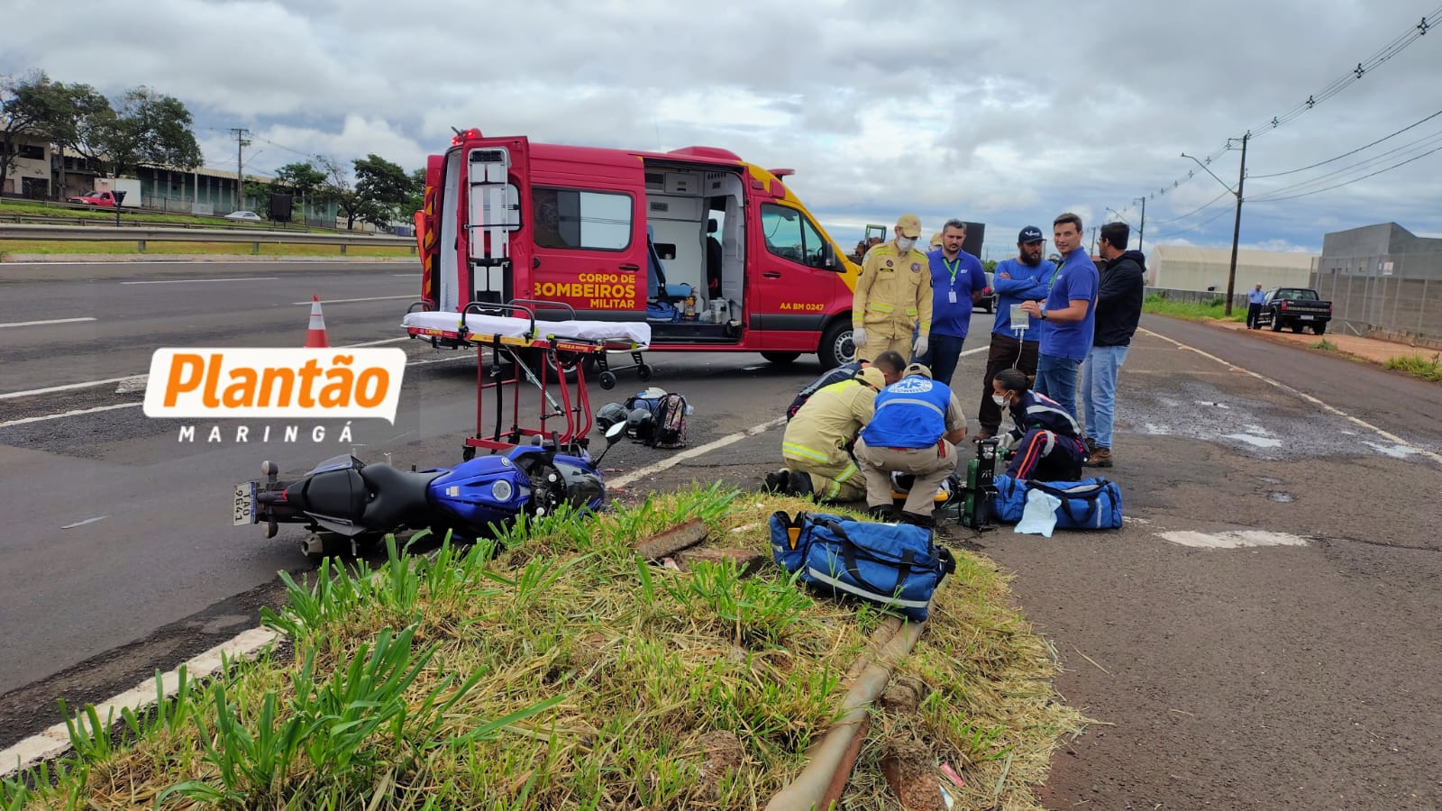 Duas pessoas que estavam em uma motocicleta ficaram feridas após um acidente na marginal do Contorno Norte, em Maringá, na manhã desta segunda-feira, 9. De acordo com informações apuradas pela reportagem, a moto e um carro seguiam pela mesma via e no mesmo sentido quando, em determinado ponto do Contorno Norte, o motorista do veículo teria realizado uma manobra irregular para acessar a via marginal. Neste momento, a motocicleta acabou sendo atingida.