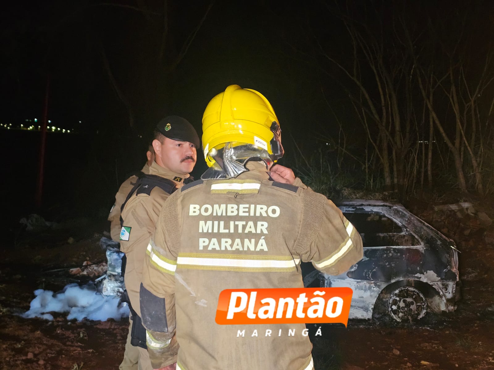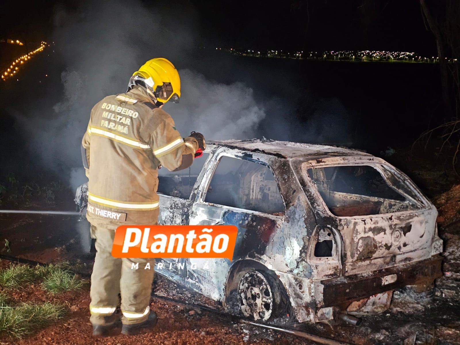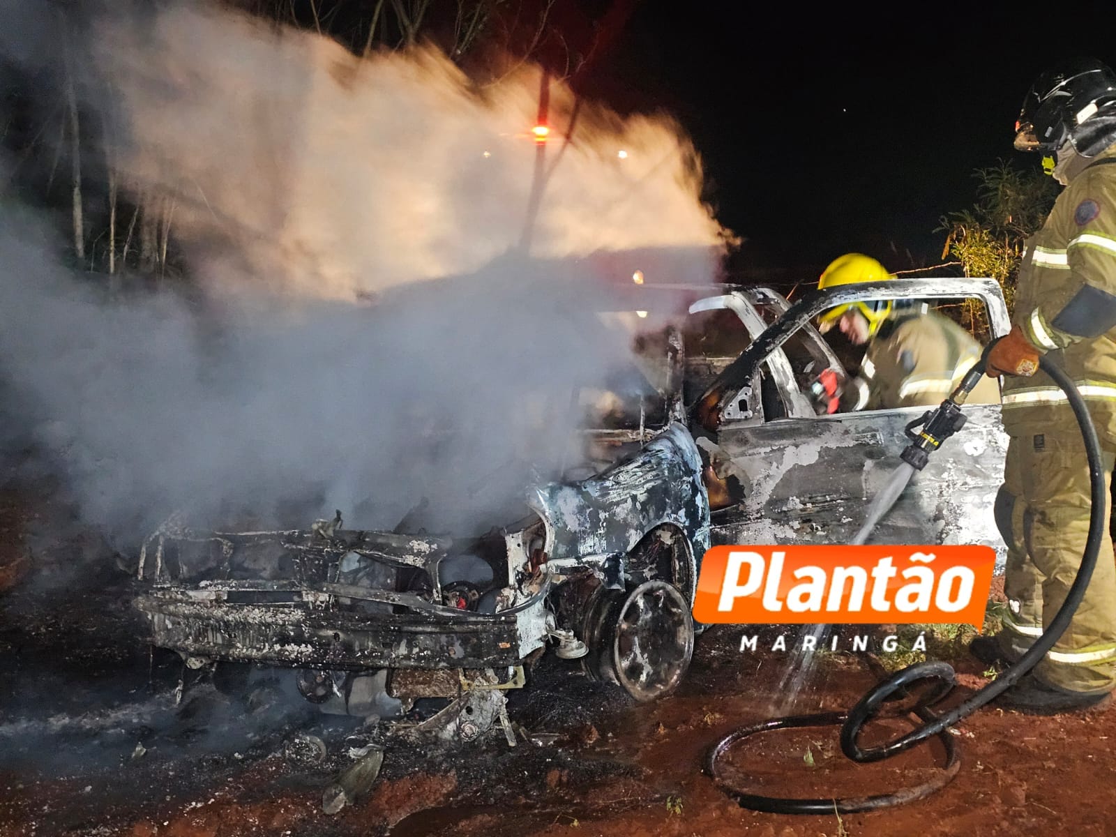 Um carro em chamas foi localizado por equipes da Guarda Civil Municipal e da Polícia Militar na noite desta terça-feira (25), na Estrada do Oito, na zona rural de Sarandi.