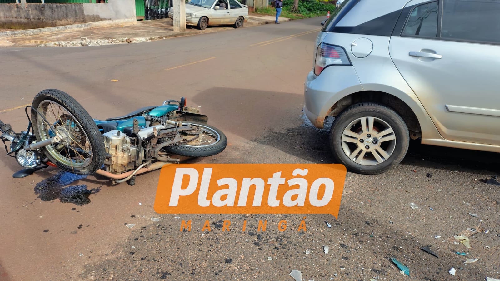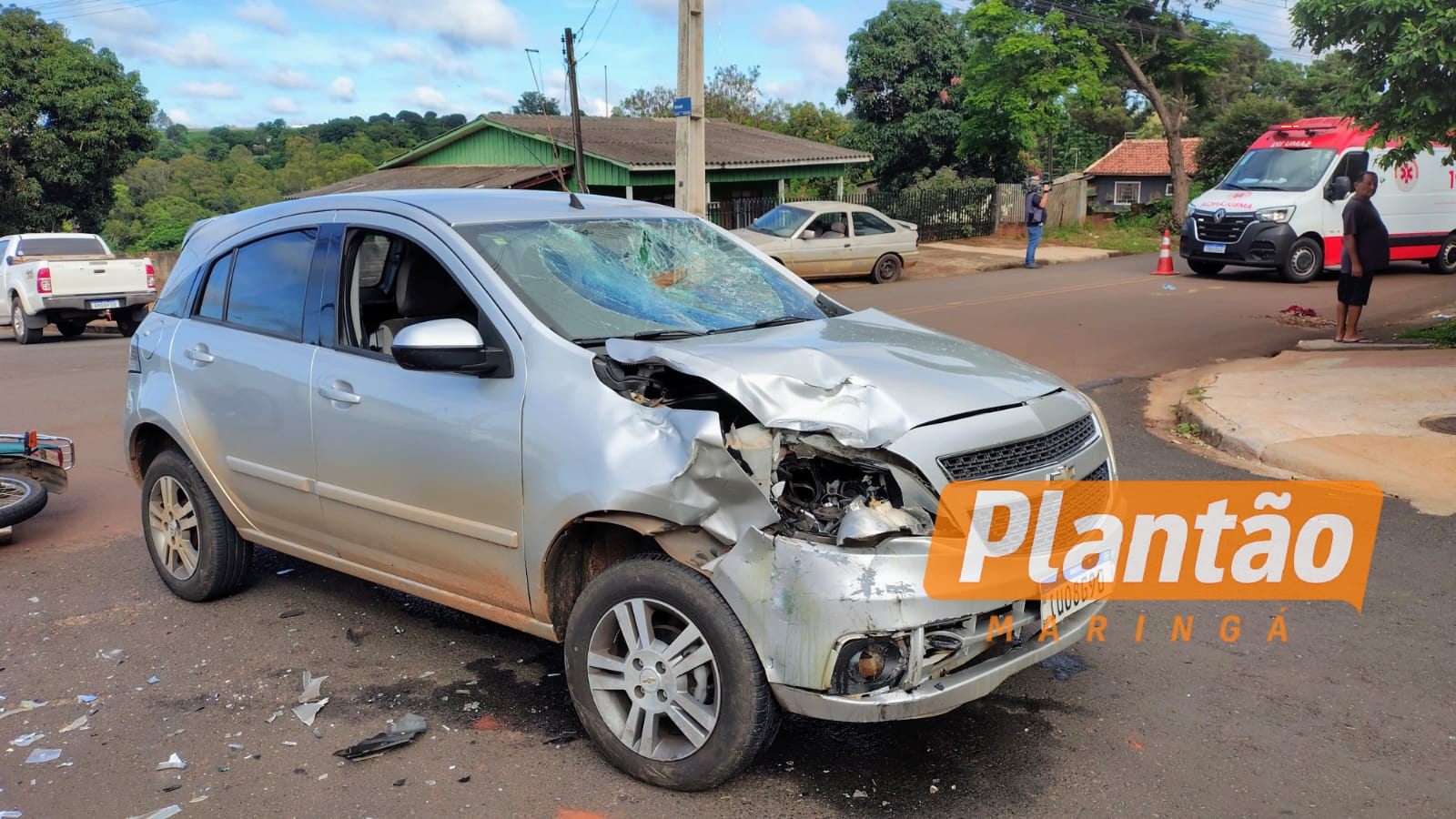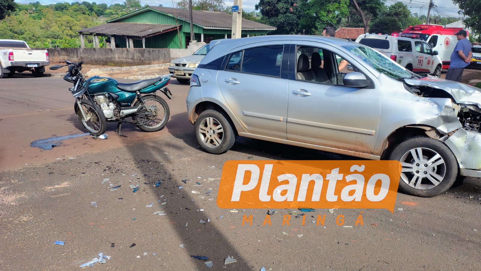 Um grave acidente de trânsito foi registrado na manhã desta quinta-feira (15), no distrito de Iguatemi, em Maringá. A colisão envolveu uma motocicleta e um automóvel que trafegavam pela Rua Alameda José Meneguetti, em sentidos opostos.