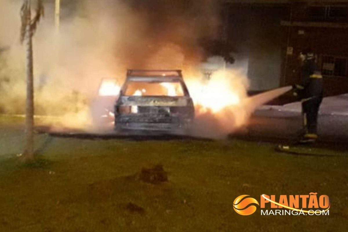 Um veículo modelo VW Gol com placas de Maringá, conduzido por uma jovem motorista de 18 anos, foi totalmente destruído pelo fogo. O automóvel se incendiou ao ser atingido por uma motocicleta.